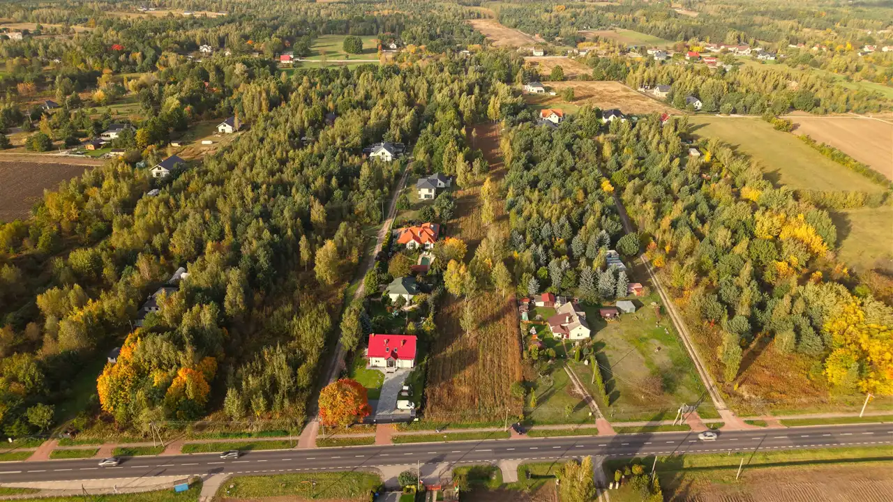 Na sprzedaż działka o numerze ewidencyjnym 23/8, położona w miejscowości Wilkowa Wieś, gmina Leszno, przy ul. Fryderyka Chopina (droga wojewódzka nr 580 Warszawa–Sochaczew).