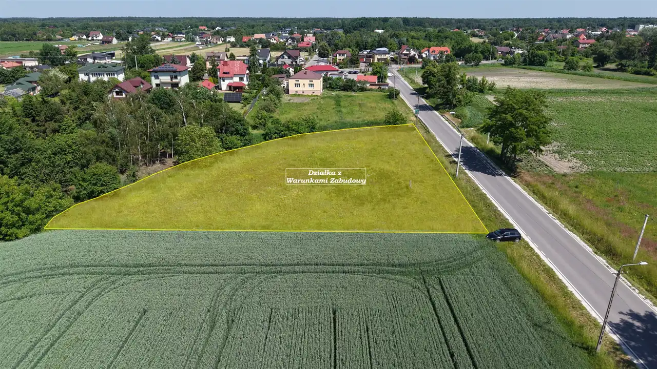 Działka rolna z wydanymi warunkami zabudowy dla budynku mieszkalnego i gospodarczego.