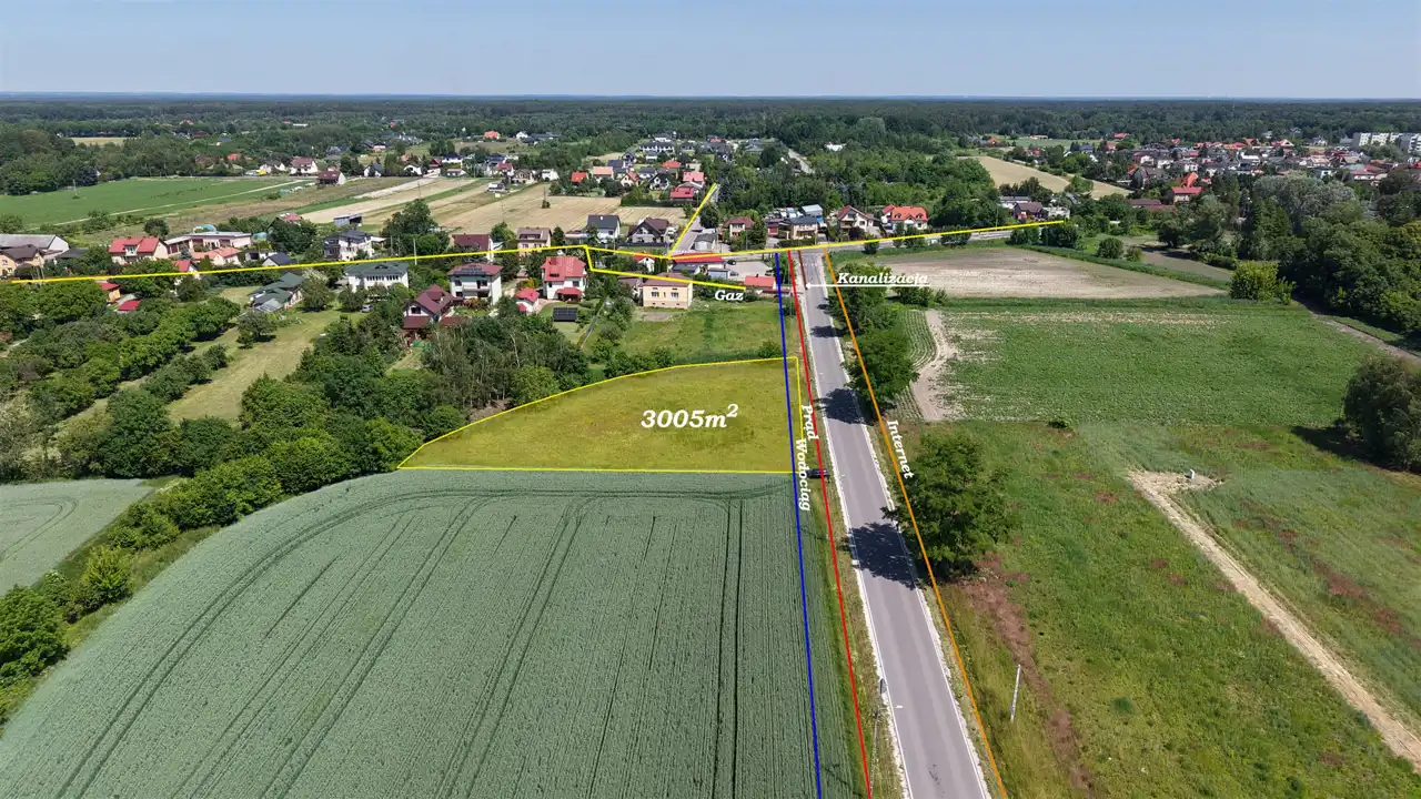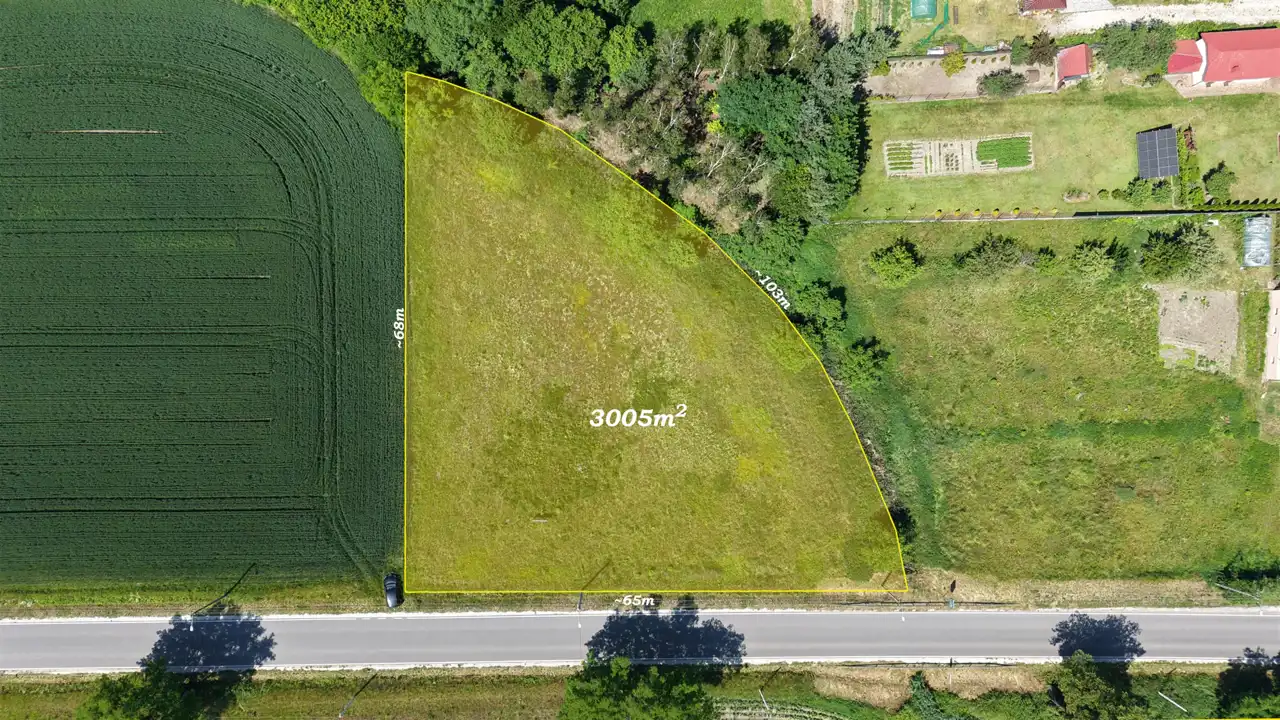 Nieruchomość o powierzchni 3005m w nieregularnym kształcie.