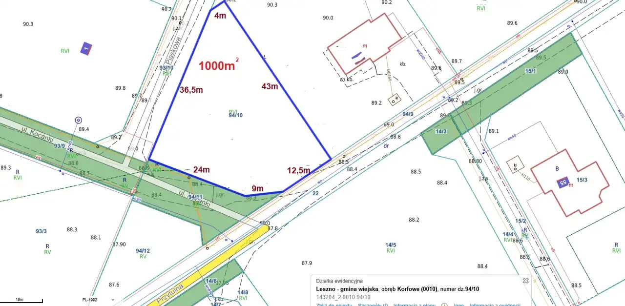 1000m działka budowlana w intrygującym kształcie, położona we wsi Korfowe gm Leszno tuż pod Puszczą Kampinoską z doskonałym dojazdem. Dokładne wymiary nieruchomości zostały zaprezentowane na mapce załączonej do oferty.