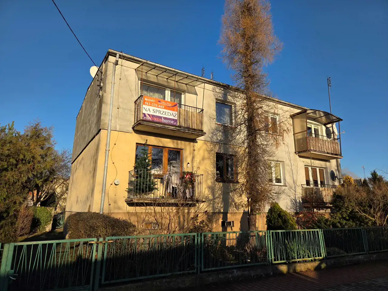Rodzaj budynku: jednopiętrowy, czterorodzinny, ogrodzony płotem metalowym.