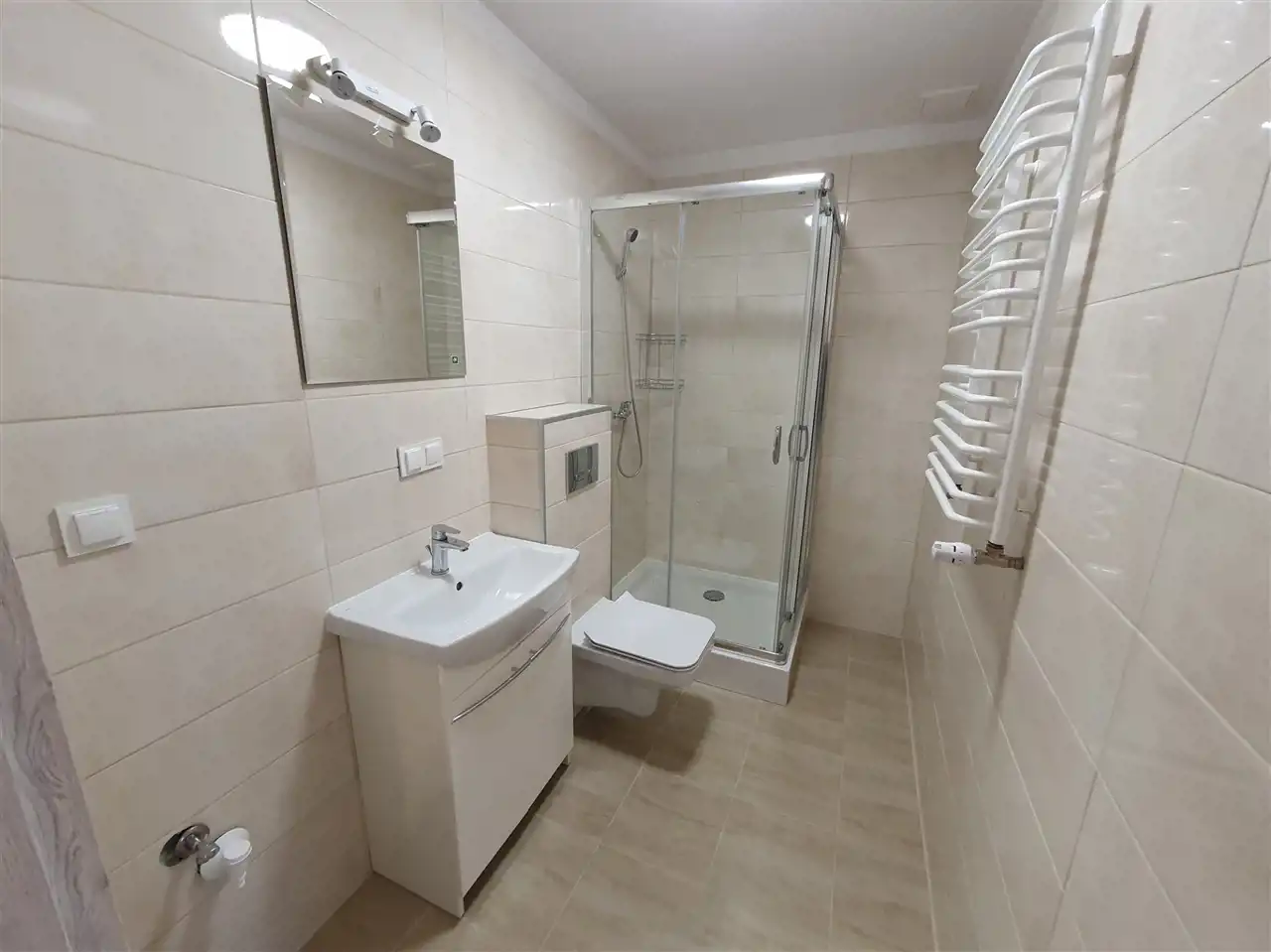 Standard wykończenia: ściany w pokojach i aneksie kuchennym gładzone i malowane, na podłogach panele. Aneks kuchenny wyposażony w zabudowę oraz sprzęt AGD (lodówko - zamrażarka, płyta elektryczna, piekarnik, okap, zmywarka). Łazienka wyłożona płytkami ceramicznymi, wyposażona w kabinę prysznicową, umywalkę z szafką, toaletę oraz pralkę. Okna PCV z roletami zewnętrznymi, drzwi wewnętrzne nowego typu.