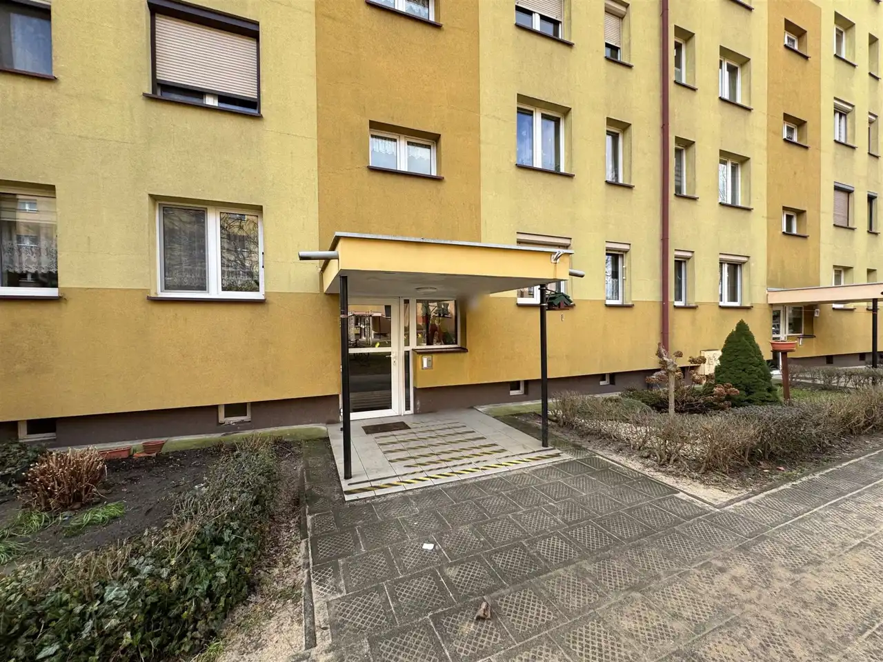 Mieszkanie usytuowane jest na drugim piętrze czteropiętrowego bloku po termomodernizacji.