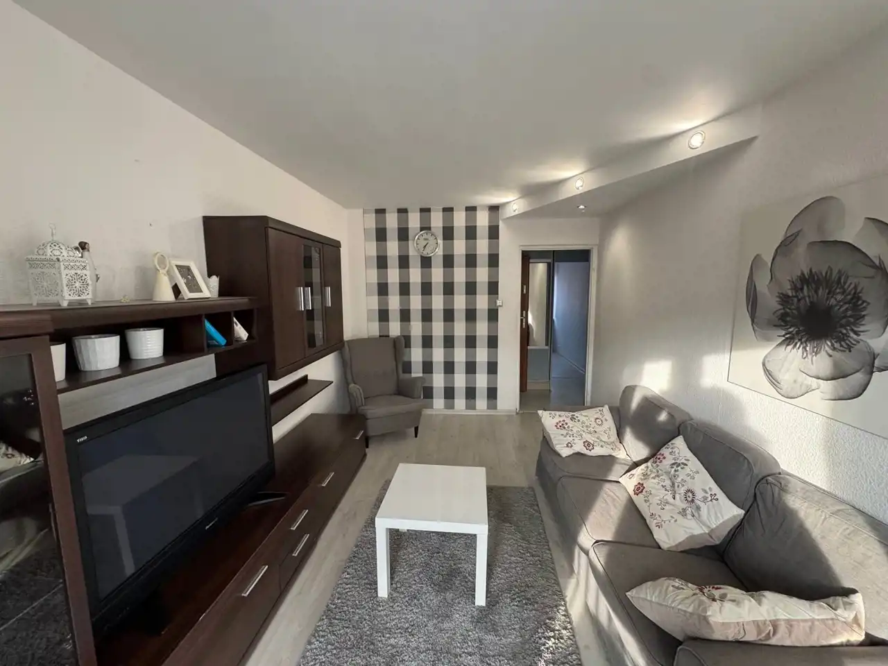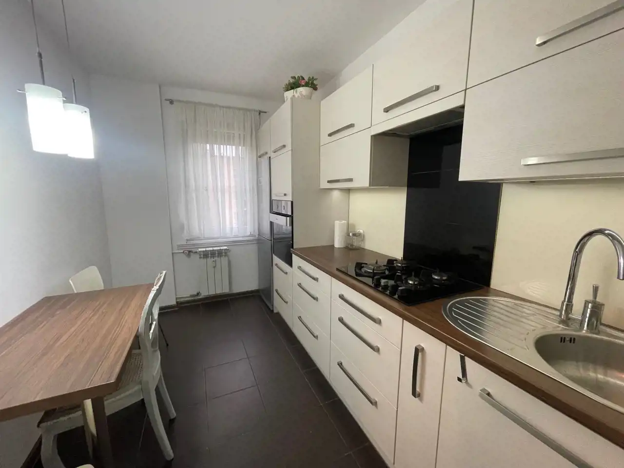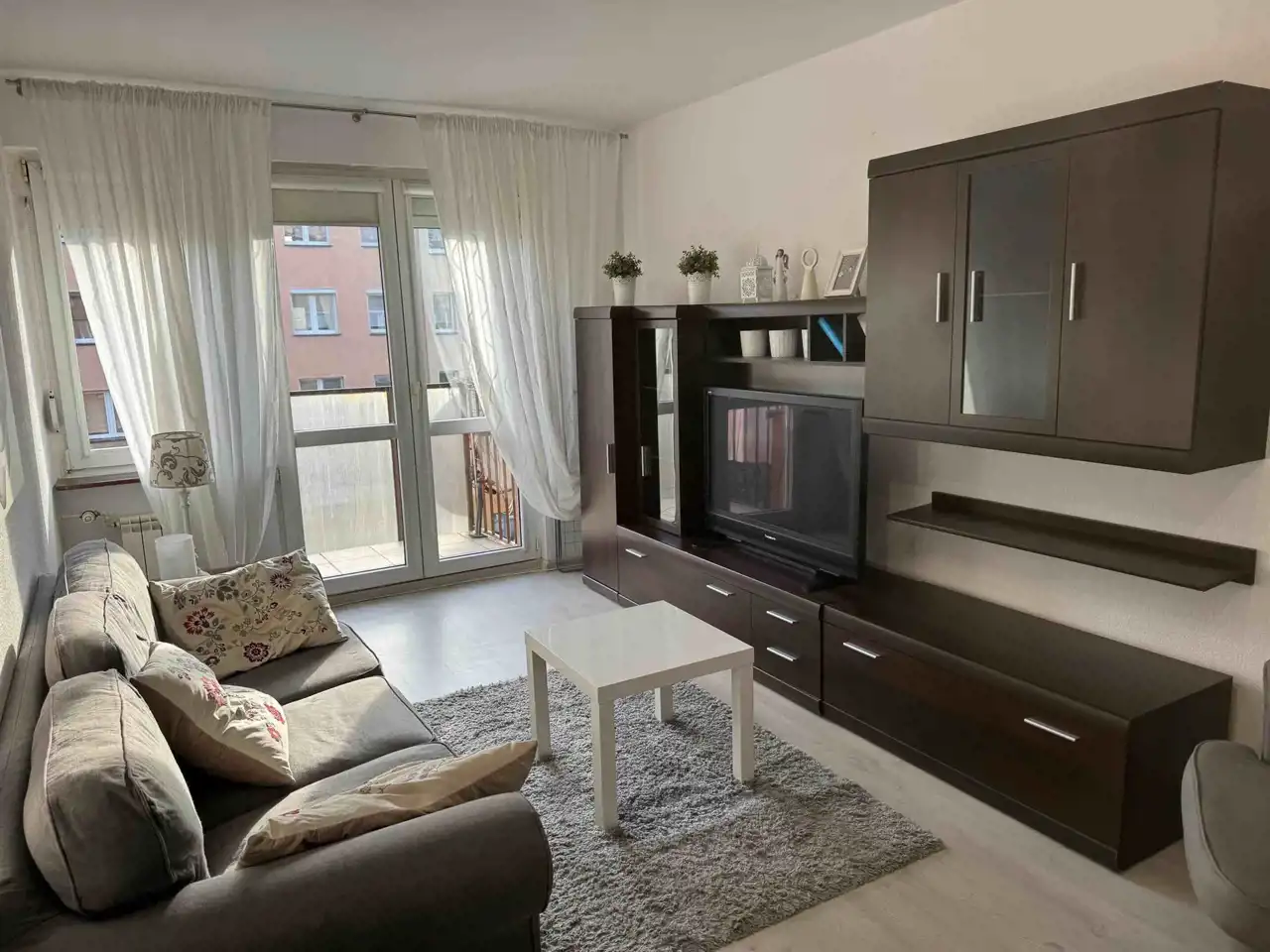 Mieszkanie o powierzchni 46,2 m 2 , przytulne i bardzo słoneczne. Okna PVC z roletami zewnętrznymi, na ścianach gładzie gipsowe i ozdobne tapety. Duży pokój z wyjściem na balkon. Łazienka w płytkach z kabiną prysznicową, pralka. Oddzielne WC. Kuchnia umeblowana.