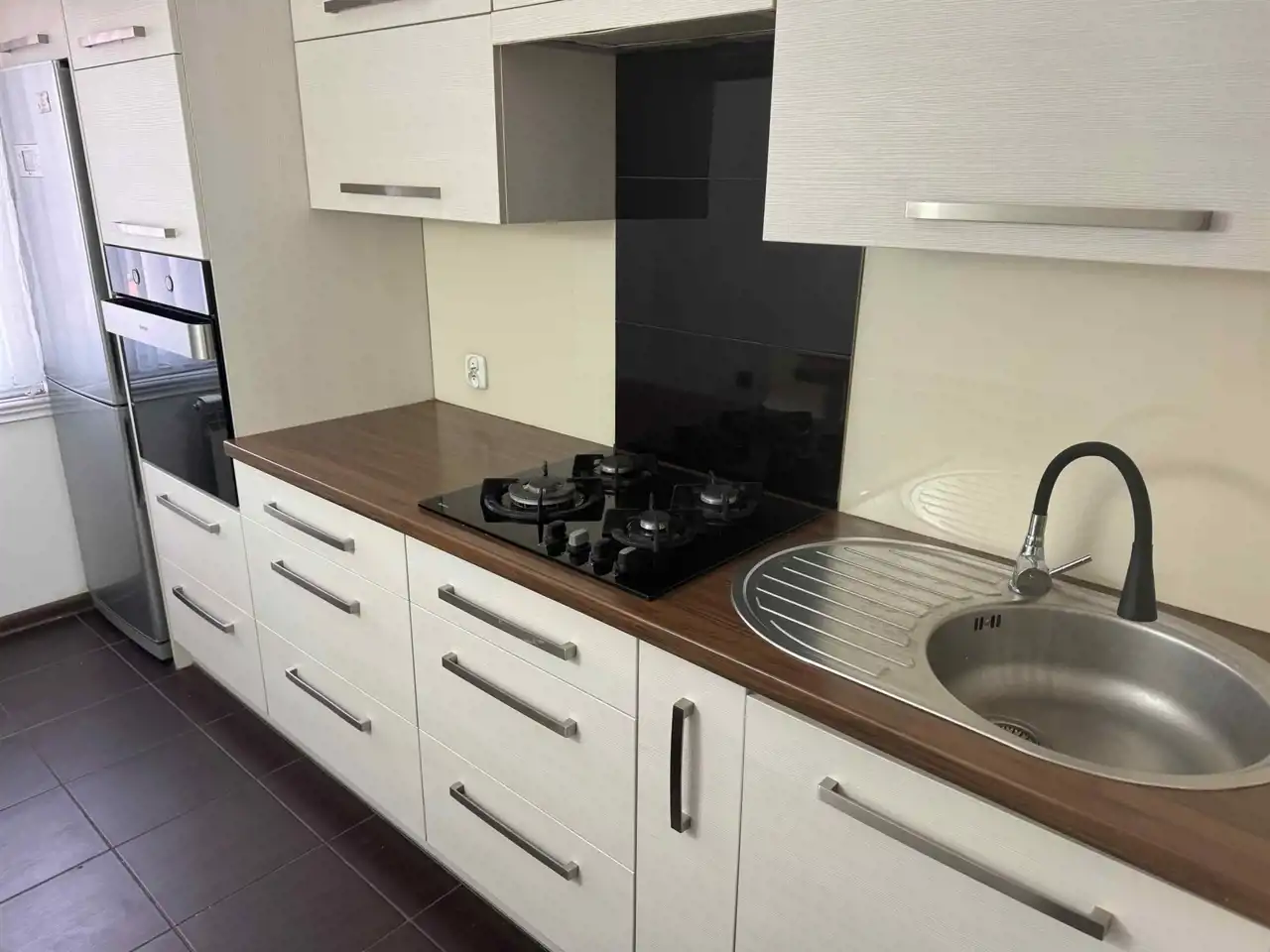 Trzy pokoje , oddzielna kuchnia, łazienka, WC, przedpokój.