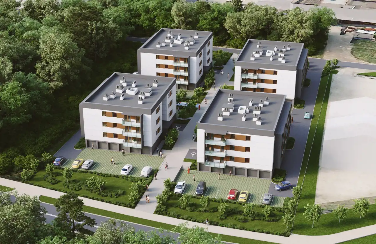 Budynki wielorodzinne w zabudowie punktowej, zaprojektowane w nowoczesnej stylistyce, wybudowane z wysokiej jakości materiałów budowlanych z naciskiem na technologie sprzyjające energooszczędności.