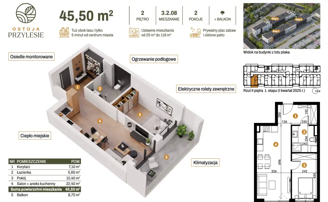 - Charakterystyka mieszkania 45.5 m2, 2 pokoje