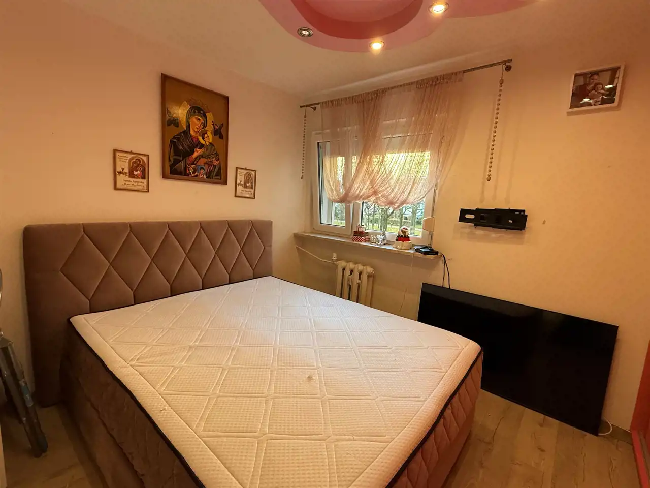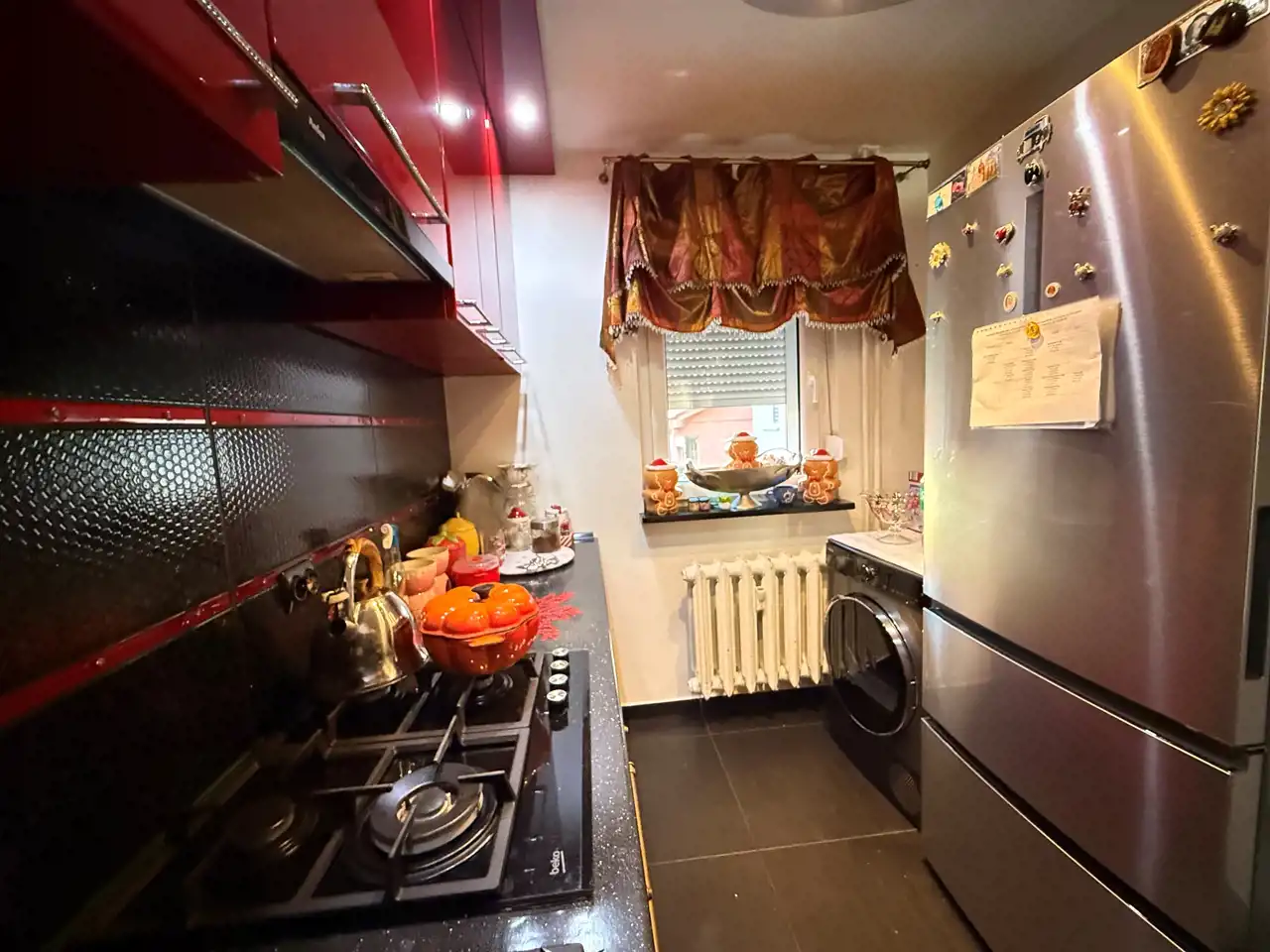 Mieszkanie wyposażone jest w zabudowę kuchenną wraz ze sprzętem AGD (kuchenka gazowa z piekarnikiem, lodówka, okap). Dwie duże szafy typu Komandor w pokojach..