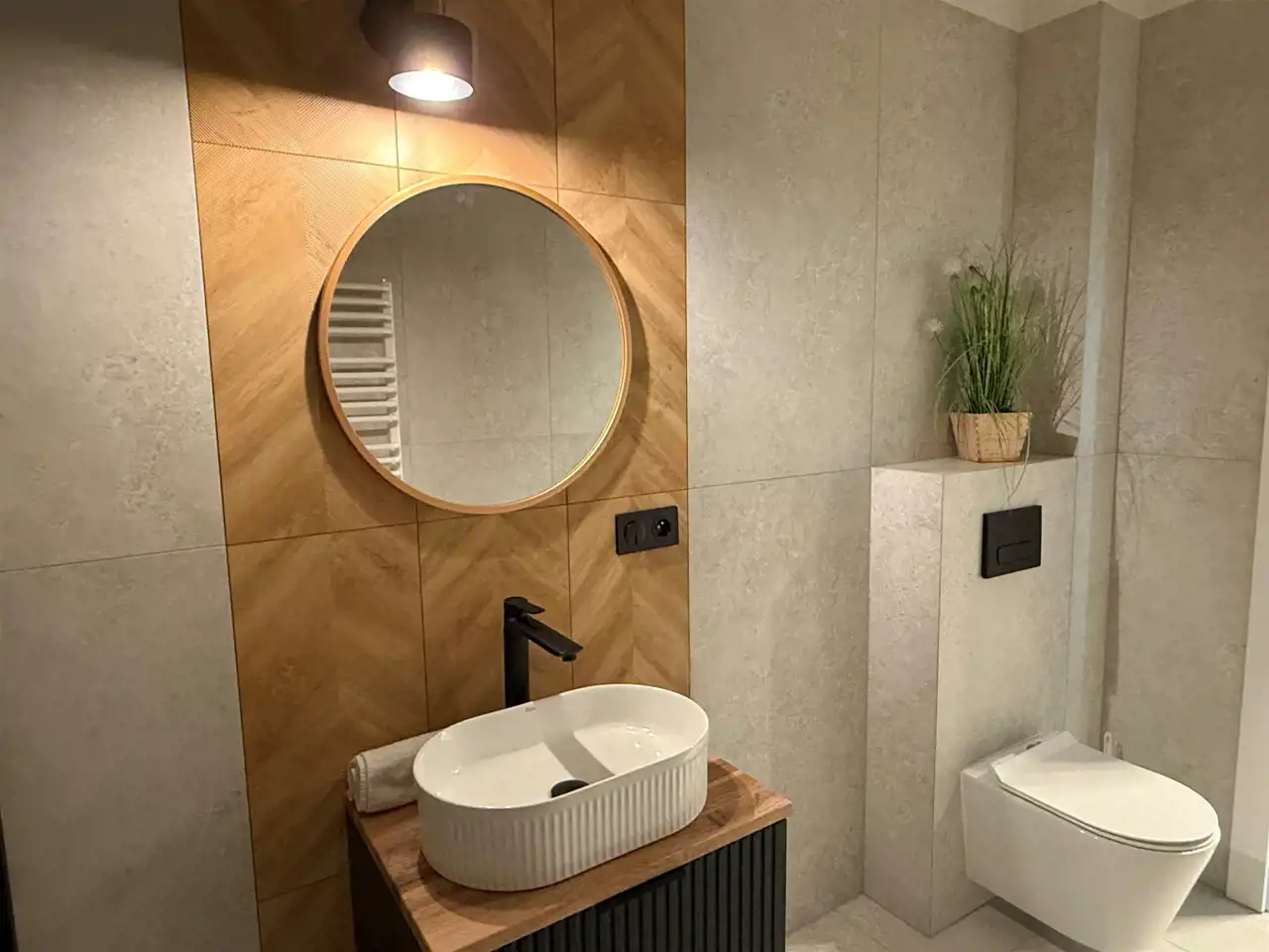z przynależnym ogródkiem w nowym bloku z windą, zlokalizowane przy ul. Kurkowej w Lesznie. Wnętrze wykończone w eleganckiej, ponadczasowej tonacji ciepłego drewna i kaszmiru.