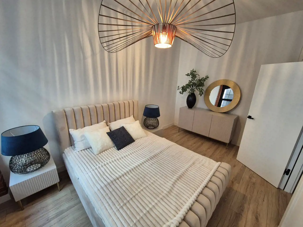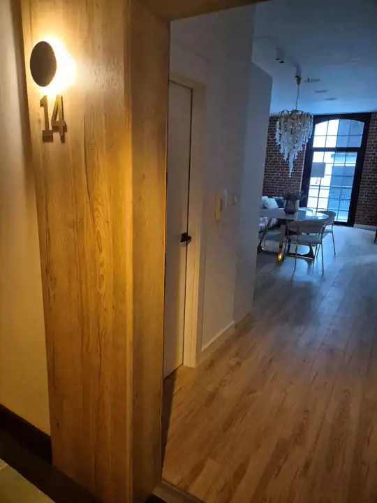- pokoje: ściany gładzone i malowane na biało oraz cegła, podłogi - panele,