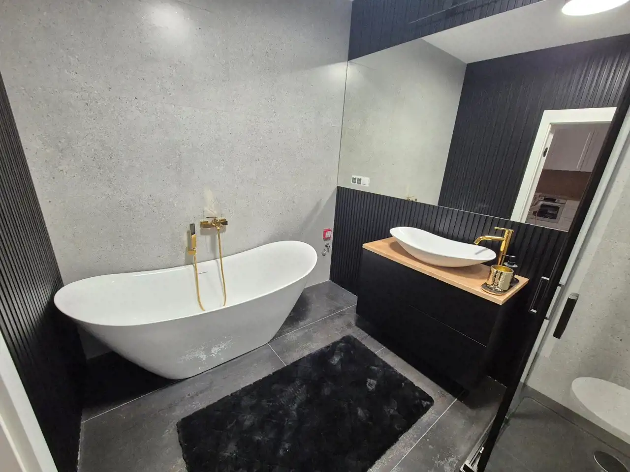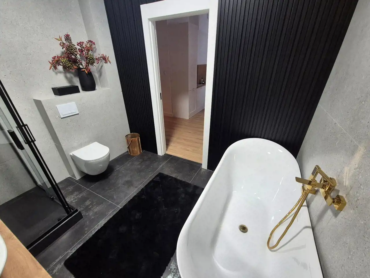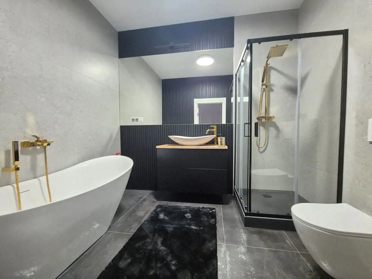 - łazienka: płytki ceramiczne, zamontowana wanna,