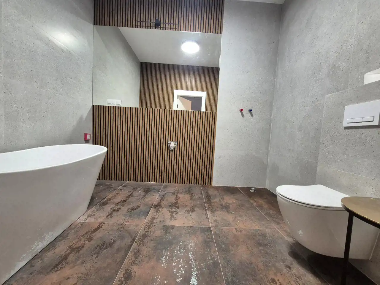 - łazienka: płytki ceramiczne, zamontowana wanna,