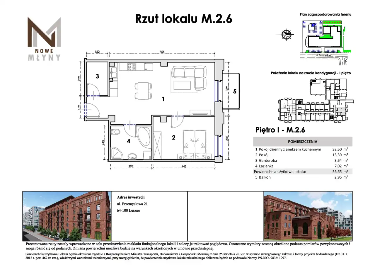 - Charakterystyka mieszkania 56.65 m2, 2 pokoje