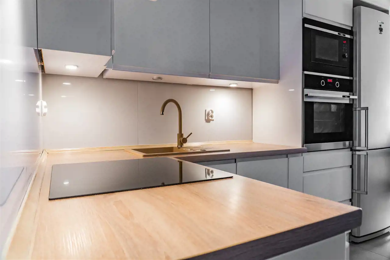 Aneks kuchenny z pełnym wyposażeniem: lodówka, piekarnik, płyta, zmywarka