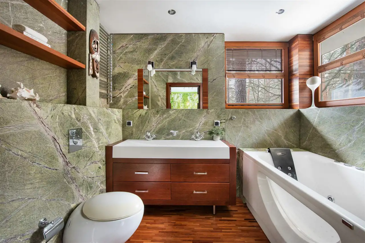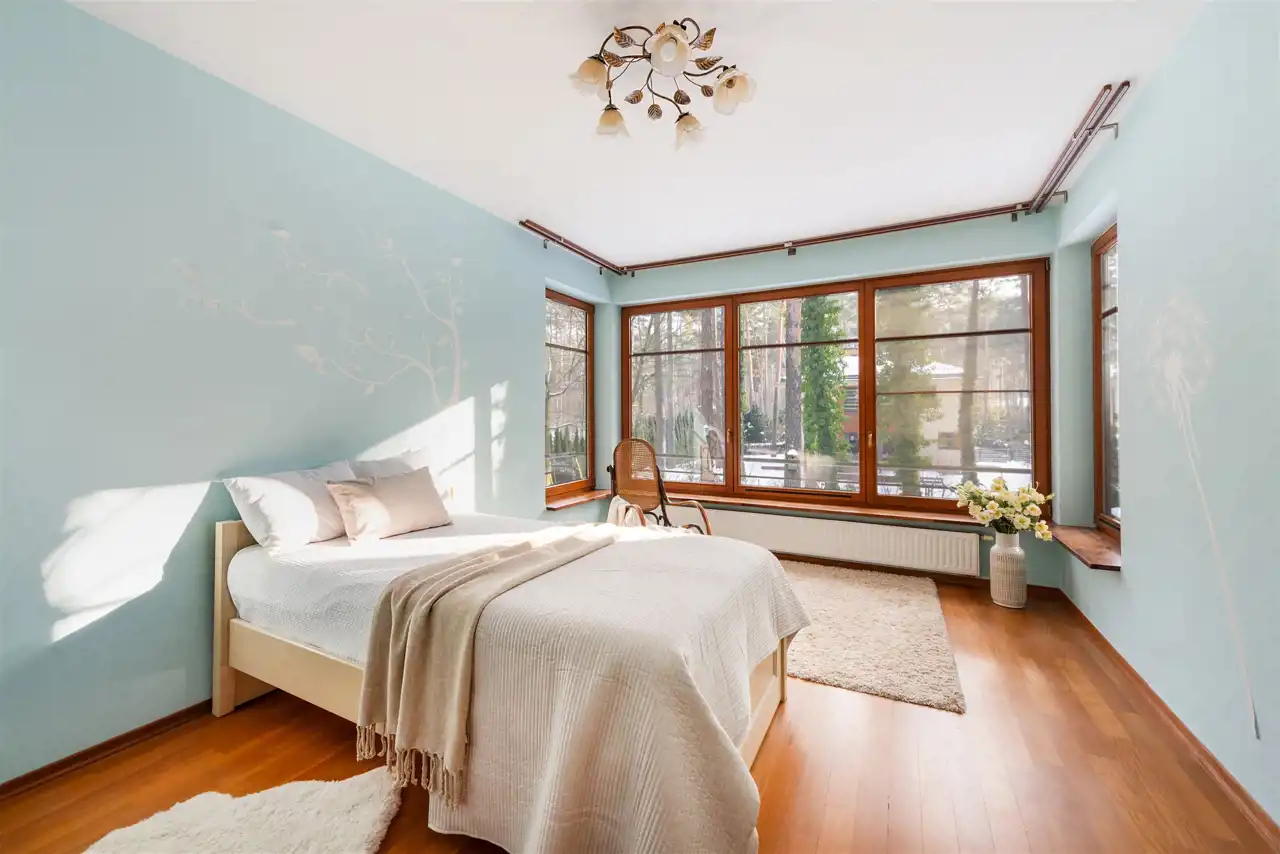 - sypialnia główna z dodatkową prywatną łazienką oraz garderobą