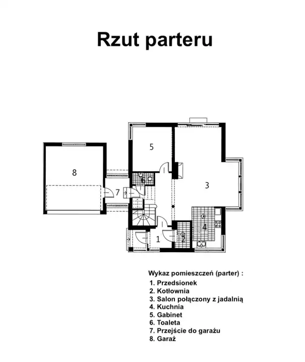 - przestronny salon połączony z jadalnią i kuchnią - otwarta strefa dzienna