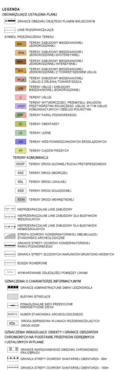 W zakresie przeznaczenia terenów, obszar działki został zaznacony symbolem U, co w szczególności oznacza: