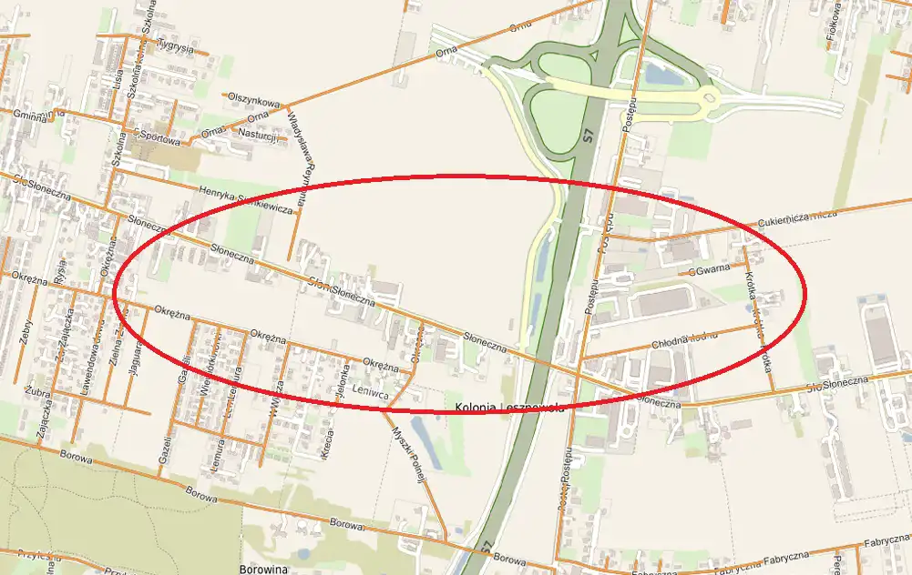 Świetnie skomunikowana, usytuowana blisko węzła "Lesznowola". Do S7 ok. 250 m.