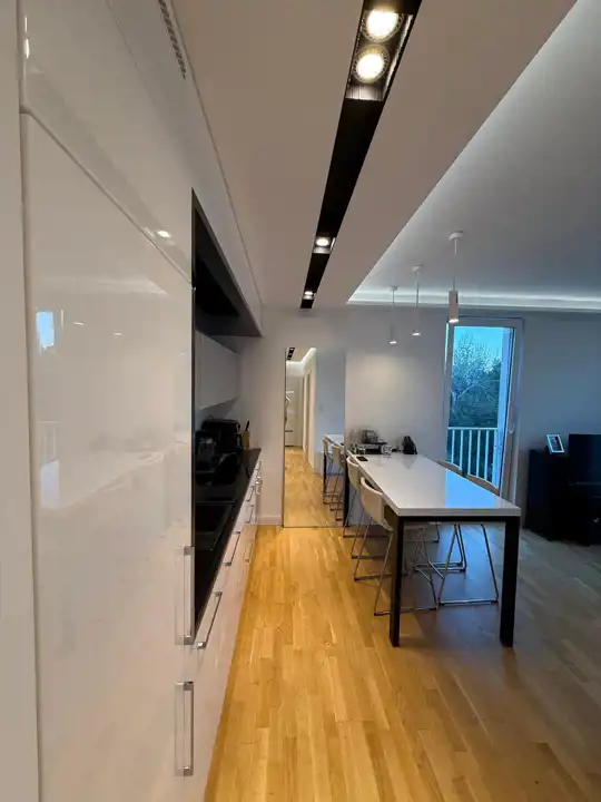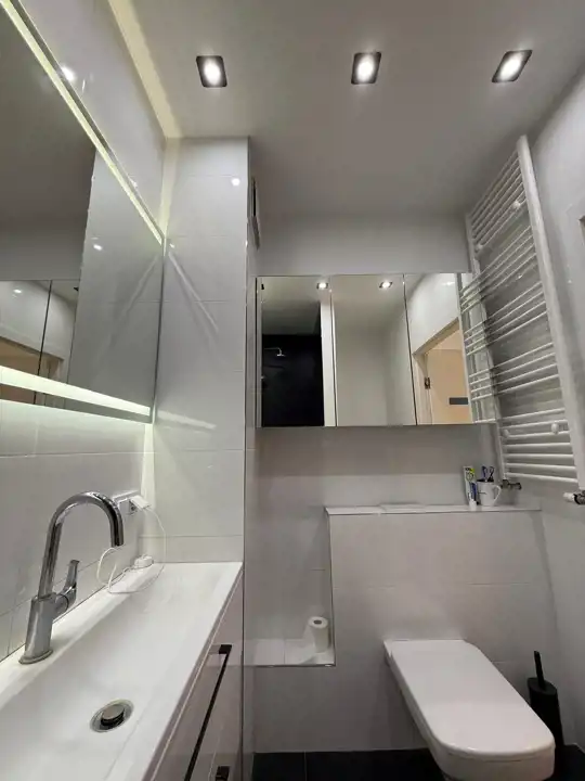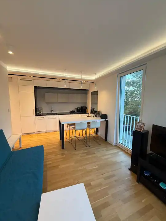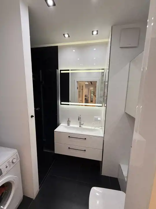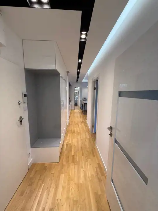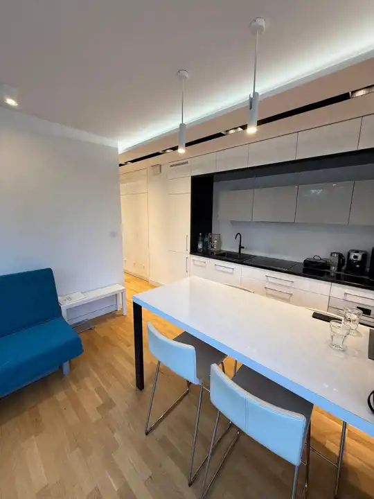 - Komfort i nowoczesność – klimatyzacja zamontowana w tym roku, wysokiej jakości meble kuchenne z frontami MDF lakierowanymi na wysoki połysk, zabudowa w łazience i przedpokoju.