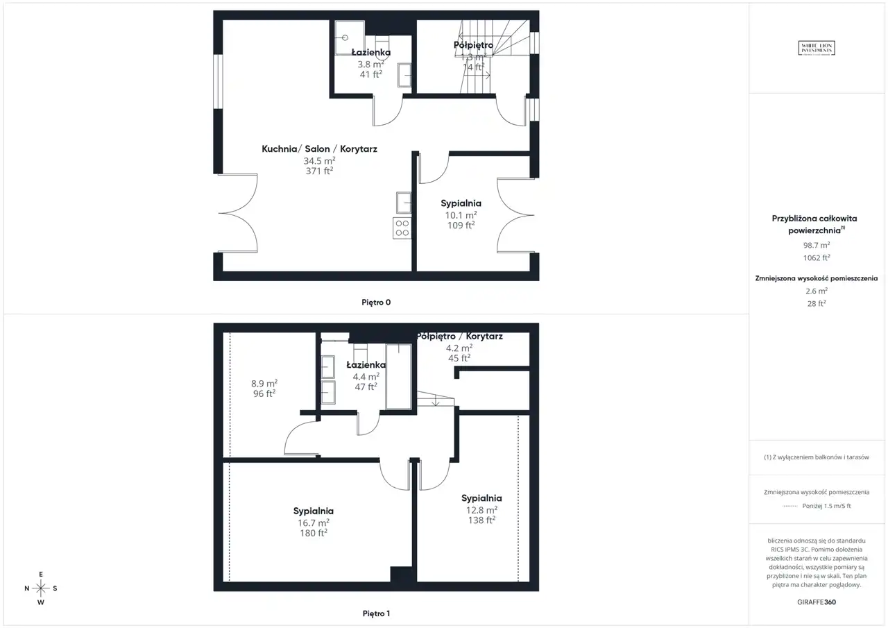 - salonu z aneksem kuchennym oraz korytarzem: 34,5 m²