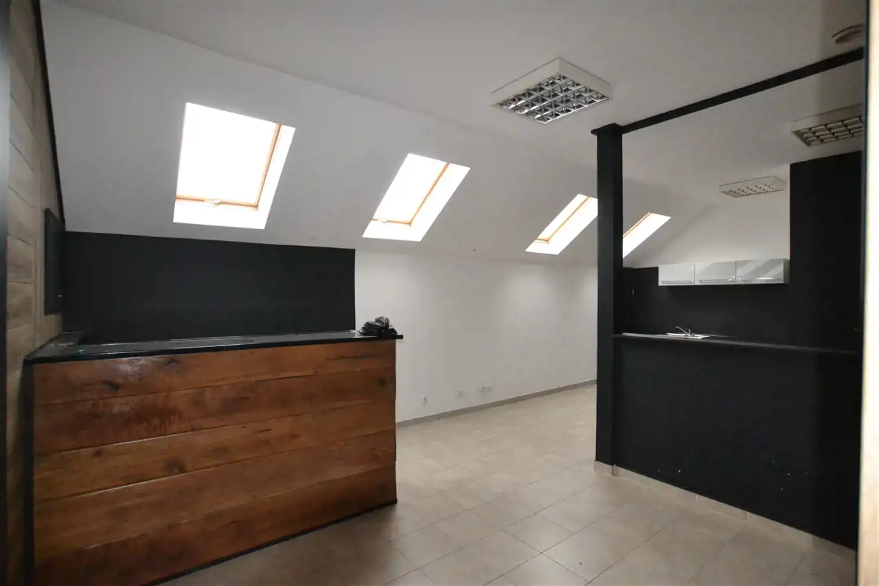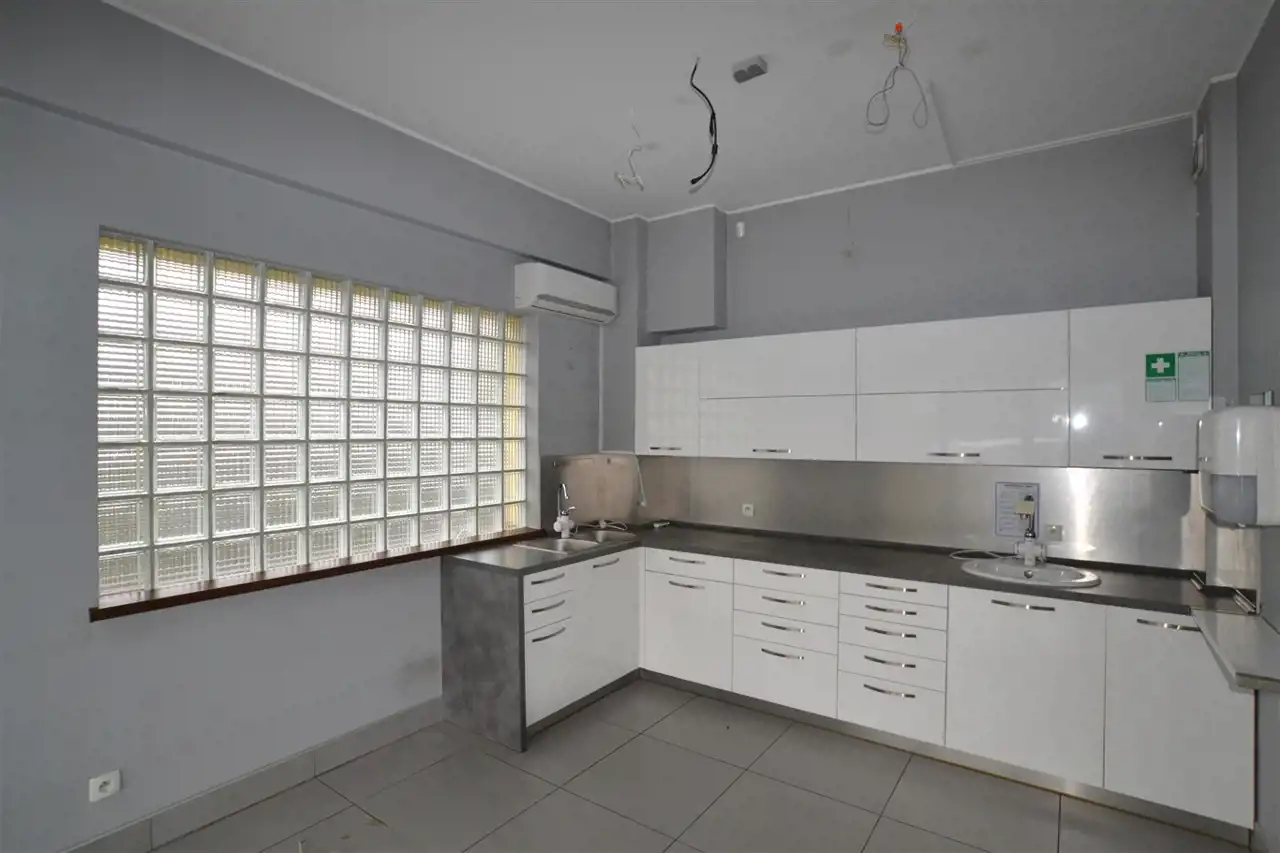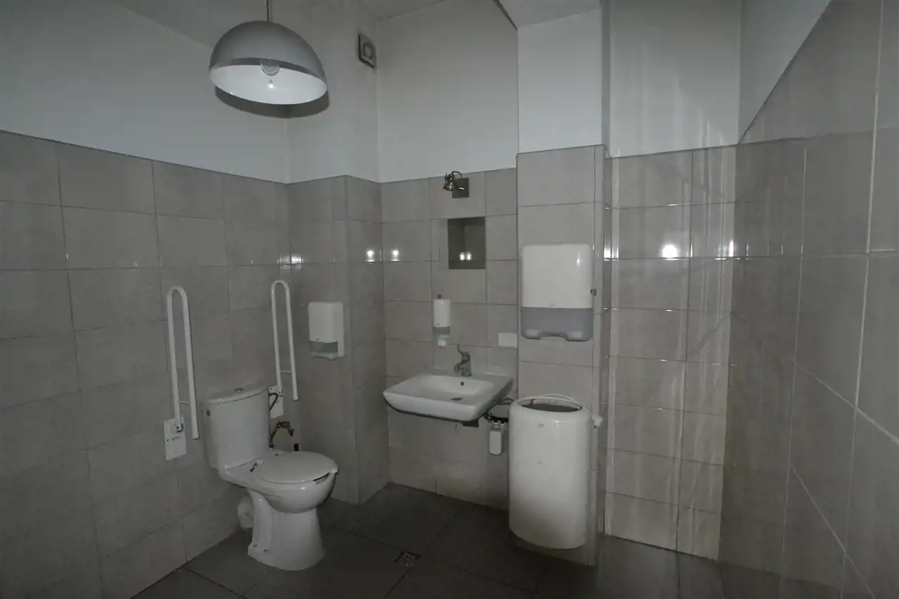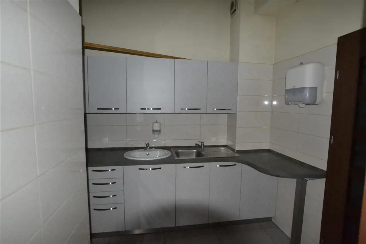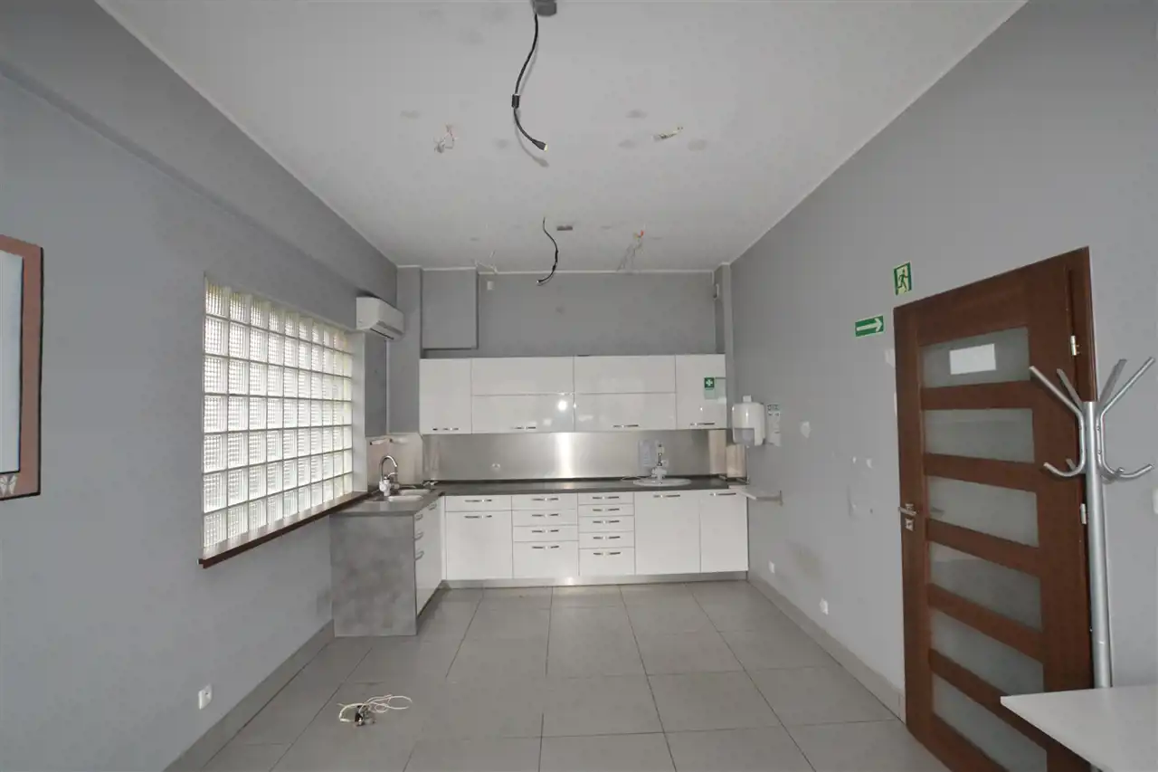 - Lokal stanowi otwartą przestrzeń, którą można dowolnie zagospodarować oraz mniejszą cześć o pow. ok. 50 m 2, wydzieloną jako osobne pomieszczenie, z kuchnią. Dodatkowo w lokalu znajduje się łazienka z WC.