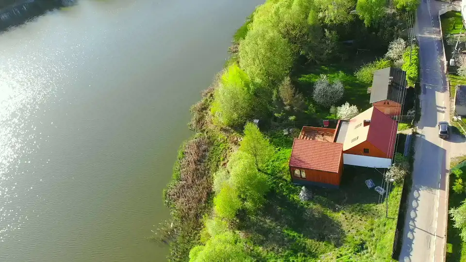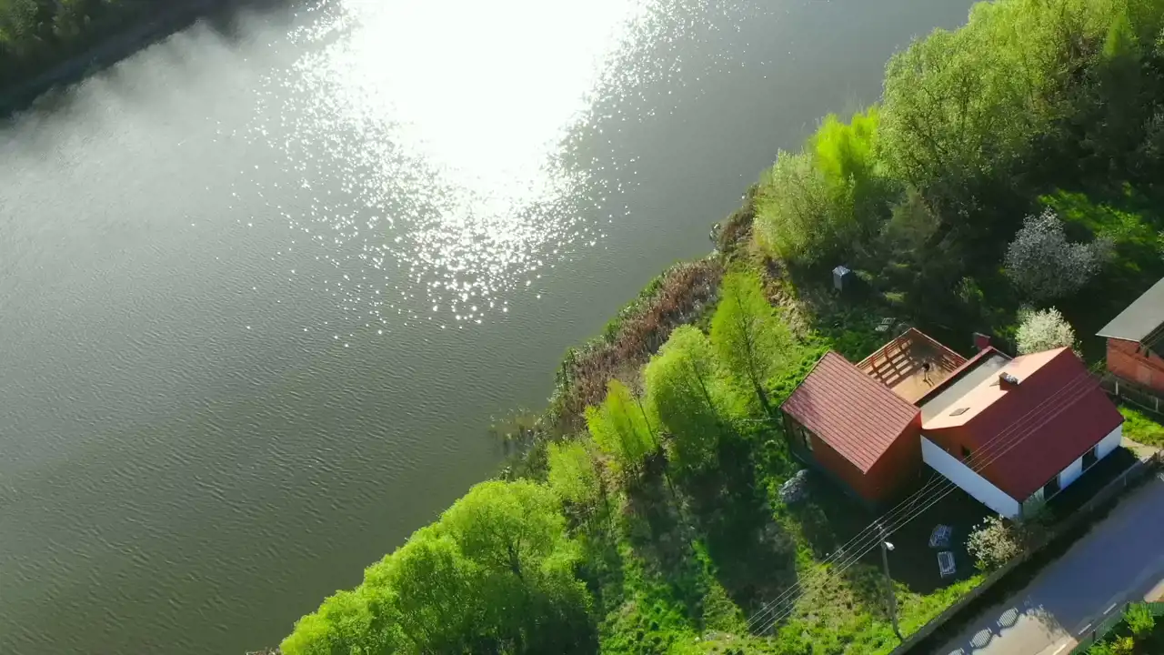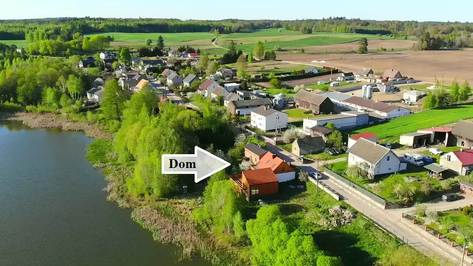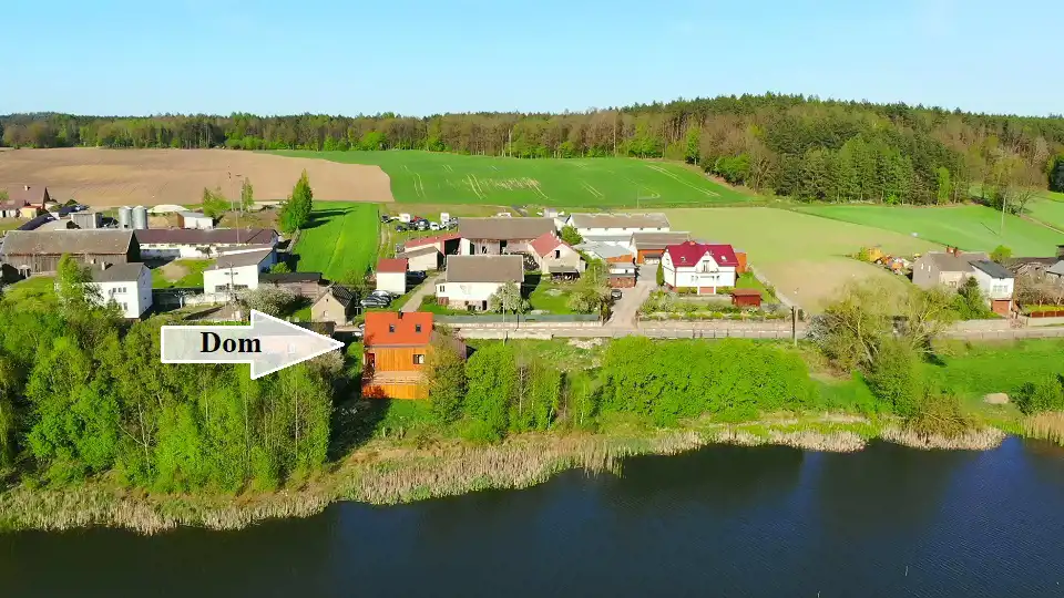 Działka o powierzchni 10 arów, linia brzegowa długości ok 41 m, odległość domu od wody- 12 metrów.