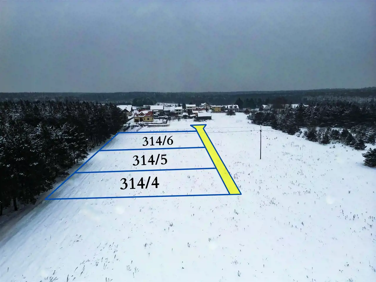 - powierzchnia każdej działki: 10 ar (1000 m²)