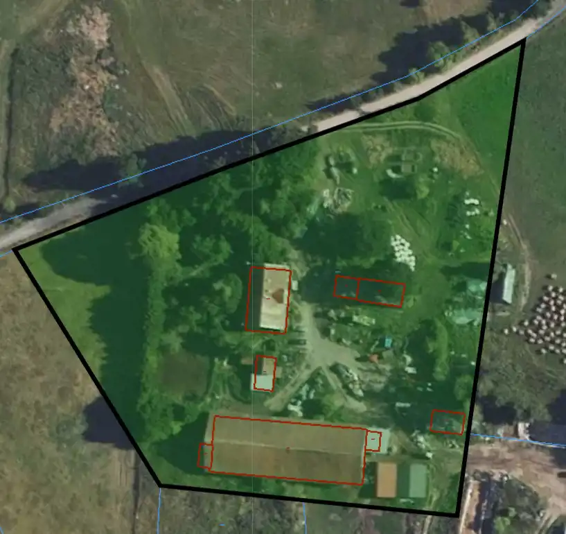 Grunt o pow. 1,34 ha zabudowany jest budynkiem dwurodzinnym o powierzchni zabudowy 227 m2 oraz 7 budynkami gospodarczymi o łącznej powierzchni zabudowy 1093 m2
