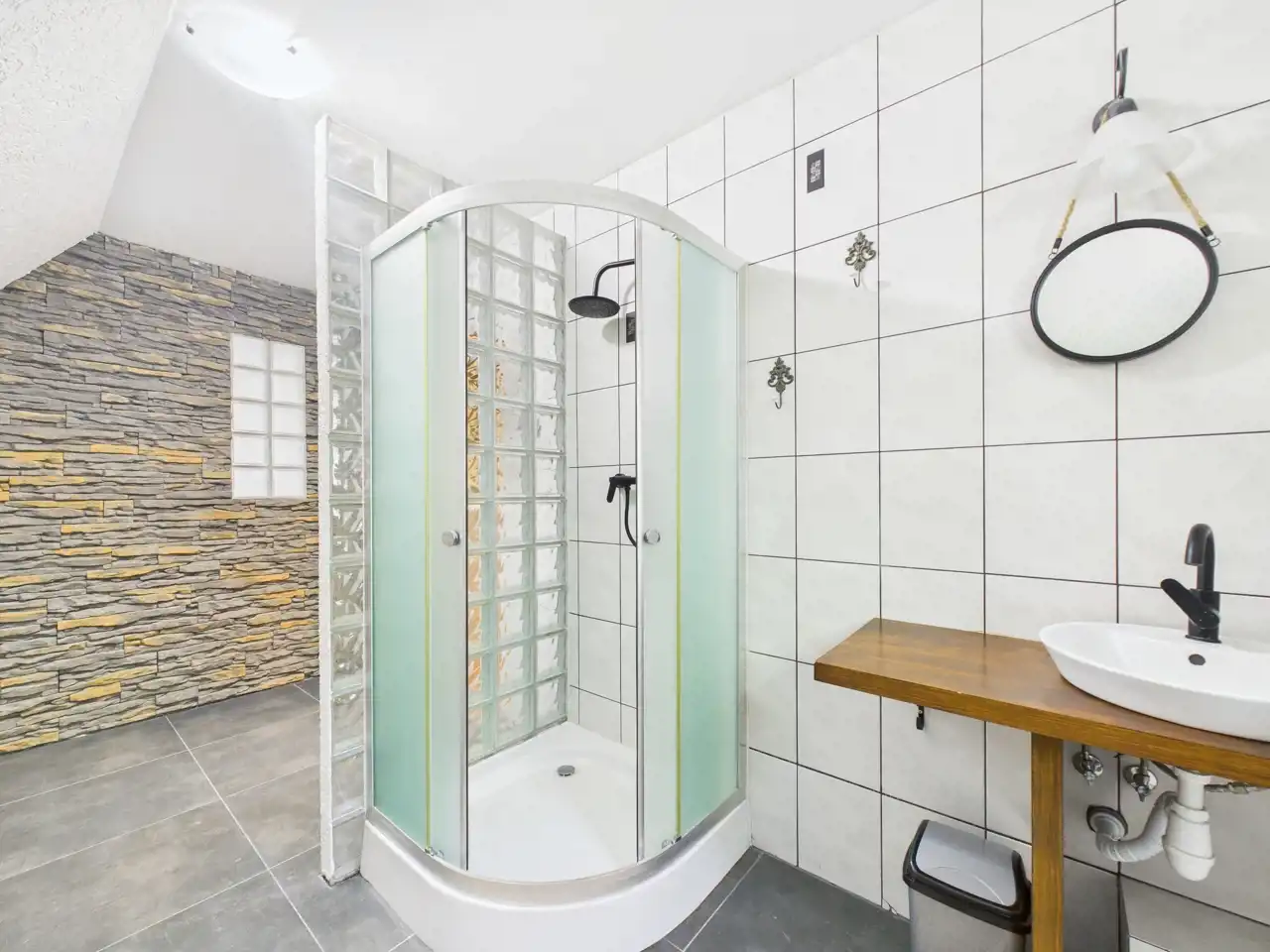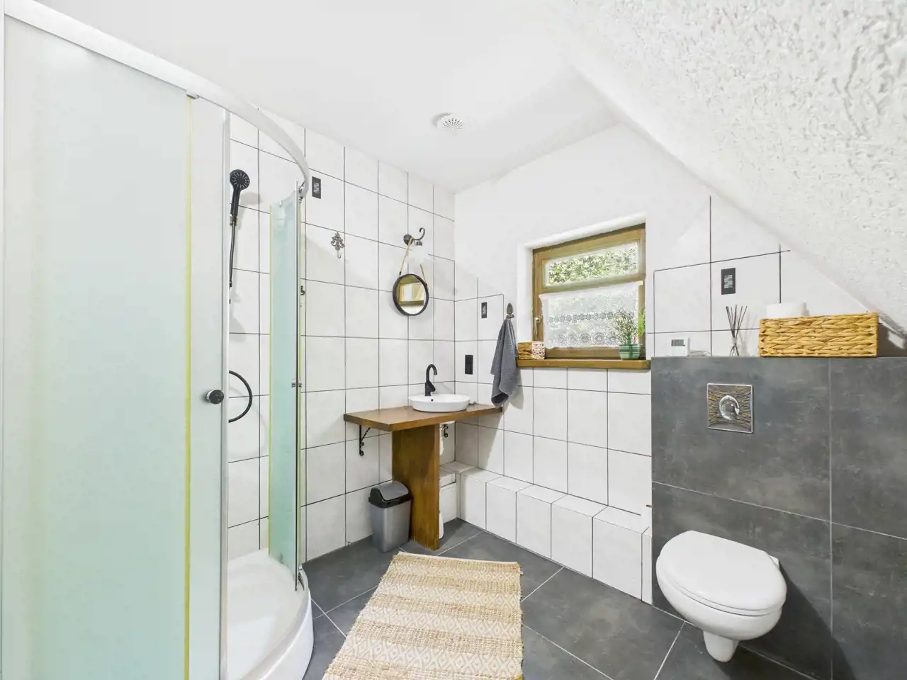 - duża jasna łazienka wyposażona kabinę prysznicową,