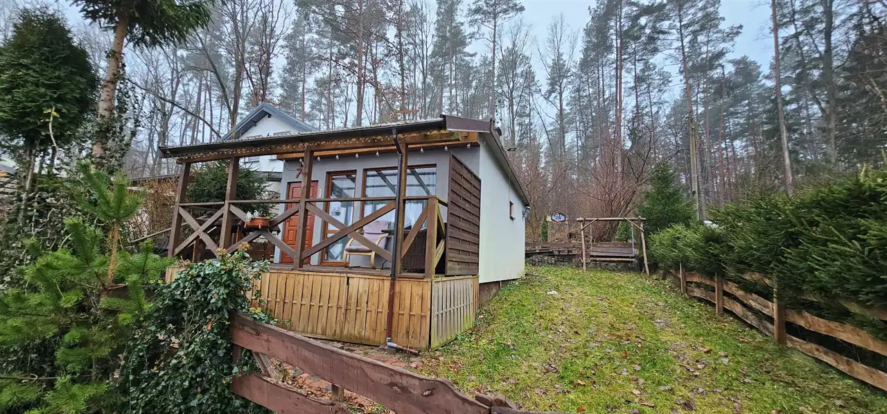 BUDYNEK, ROZKŁAD I WYPOSAŻENIE: Domek drewniany z zadbaną elewacją w bardzo dobrym stanie technicznym, w całości docieplony, okna pcv. Na dachu blachodachówka. Składa się z jednej kondygnacji. Tuż na wejściu znajduje się salon z aneksem kuchennym ze zmywarką i lodówka oraz pełnym wyposażeniem i wyjściem na duży taras. Idealnie nasłoneczniony, z widokiem na jezioro stanowi na wypoczynek, grill ze znajomymi czy rodzinne posiłki, które w takich okolicznościach przyrody smakują lepiej niż w renomowanej restauracji. W salonie znajduje się BIOKOMINEK który nadaje domowego klimatu również w ciepłe wieczory. Przy wejściu znajduje się również funkcjonalna mini przestrzeń na okrycia wierzchnie. Łazienka wyposażona w prysznic oraz WC. Tuż przy salonie znajduje się sypialnia z dwuosobowym łożem oraz praktycznymi szafkami. W oddzielnym budynku znajduje się pomieszczenie gospodarcze. To miejsce gdzie zmieszczą się wszystkie narzędzia i sprzęty np. kosiarka. Ciepła woda pochodzi z elektrycznego bojlera. W cenie nieruchomości pozostają wszystkie meble ruchome widoczne na zdjęciach oraz stałe zabudowy i oświetlenie. Dzięki temu nabywając ten domek od razu można z niego w pełni korzystać i cieszyć się ciszą i spokojem na łonie natury.