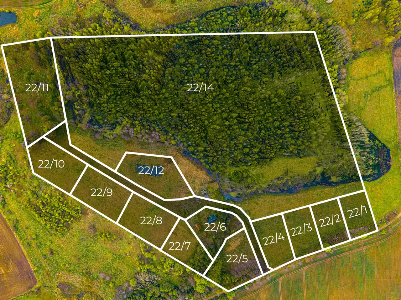 12. Działka 22/12 o pow. 5623 m2 w kwocie 141 000 zł - możliwe uzyskanie warunków zabudowy.