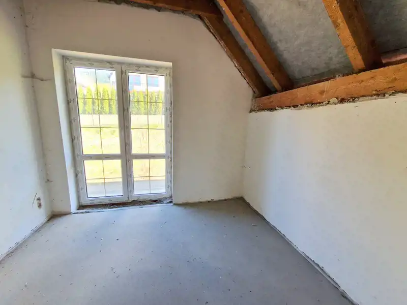 • Powierzchnia: Nieruchomość ma powierzchnię użytkową wynoszącą 171,49 m². Znajduje się na działce o wielkości 450 m², która ma lekkie nachylenie. Działka nie jest jeszcze zagospodarowana, ale częściowo jest ogrodzona. Wokół budynku wykonano drenaż.