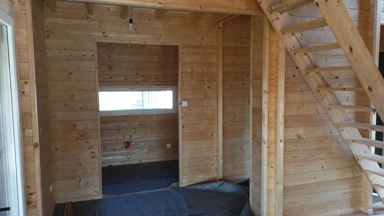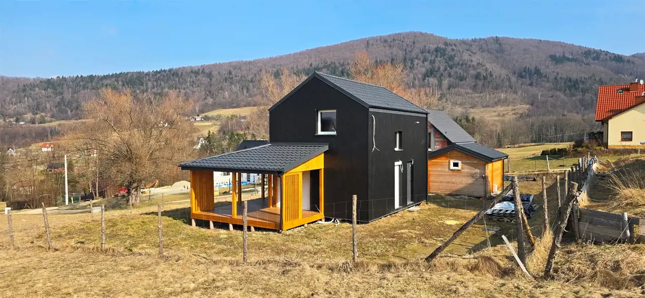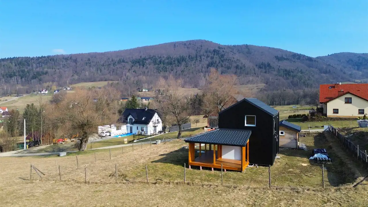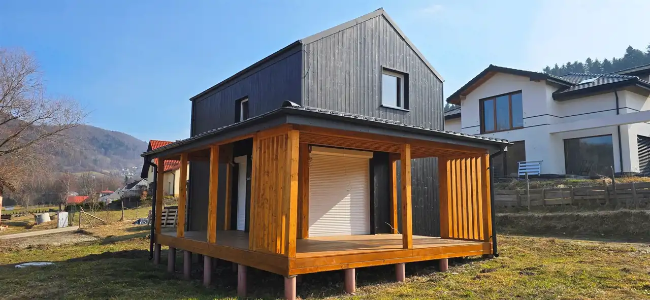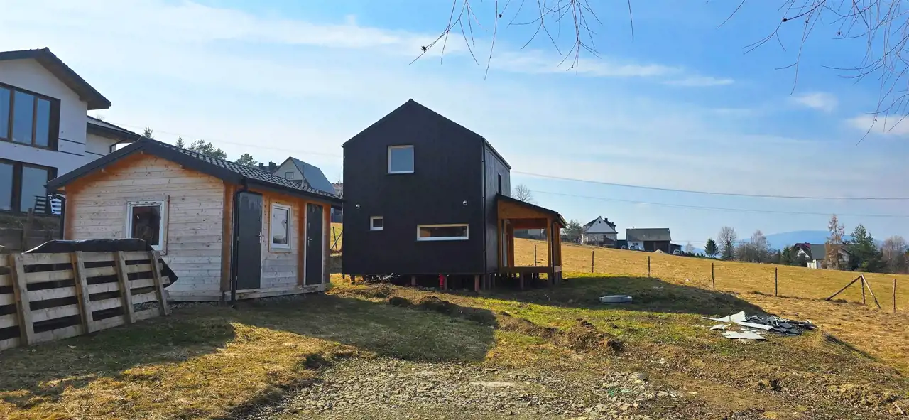 Budynek o powierzchni całkowitej (mierzonej po podłodze) ok. 55 m² został wybudowany w 2025 roku (na zgłoszenie) w technologii szkieletowej z wysokiej jakości drewna świerkowego.