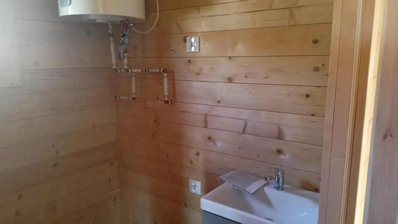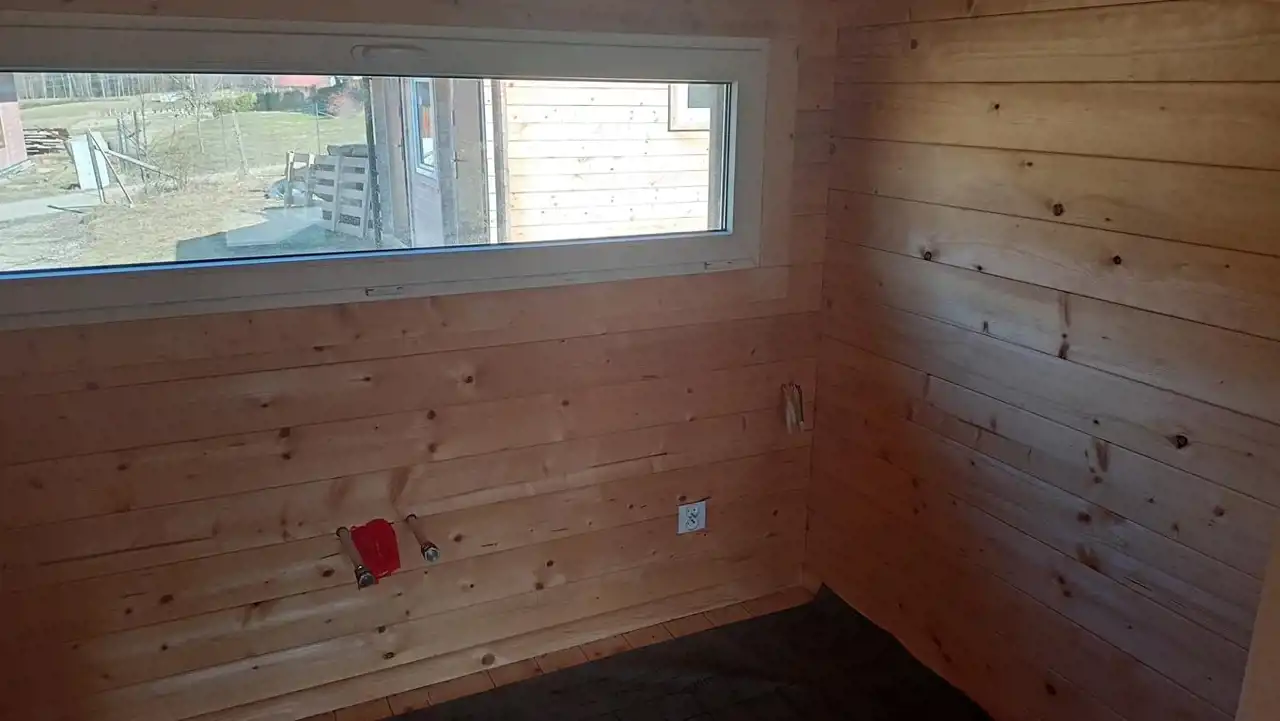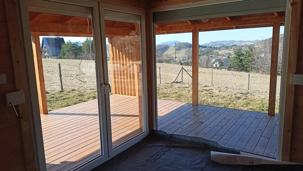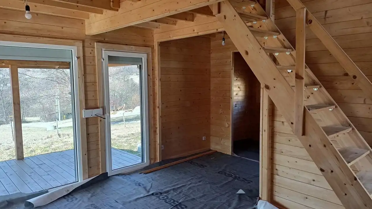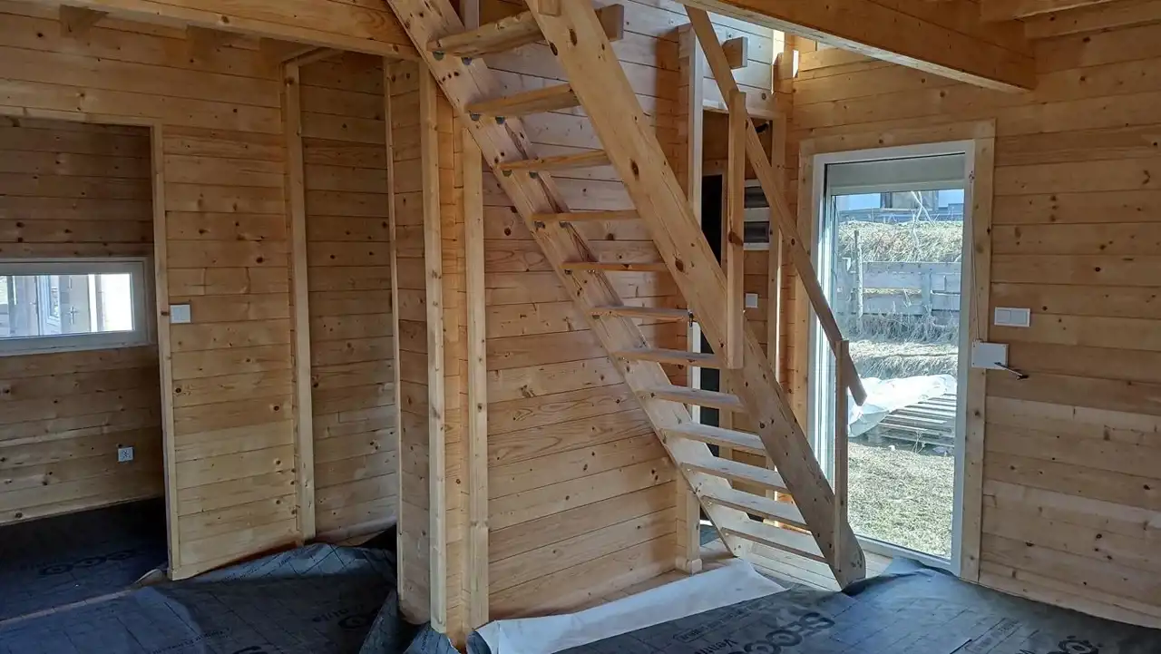Budynek o powierzchni całkowitej (mierzonej po podłodze) ok. 55 m² został wybudowany w 2025 roku (na zgłoszenie) w technologii szkieletowej z wysokiej jakości drewna świerkowego.