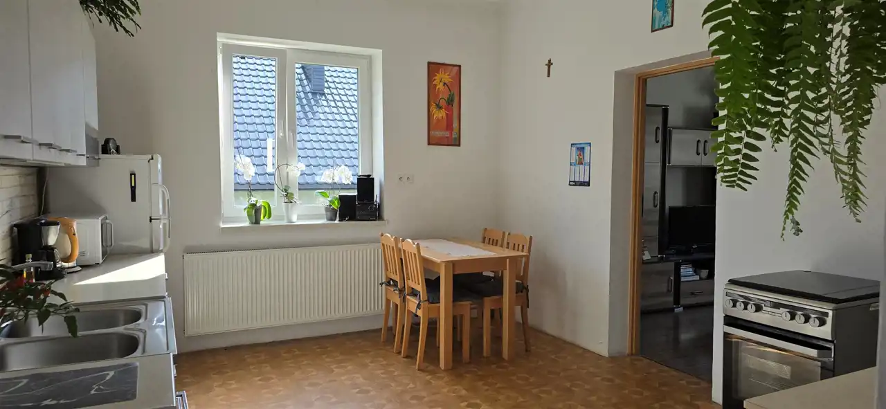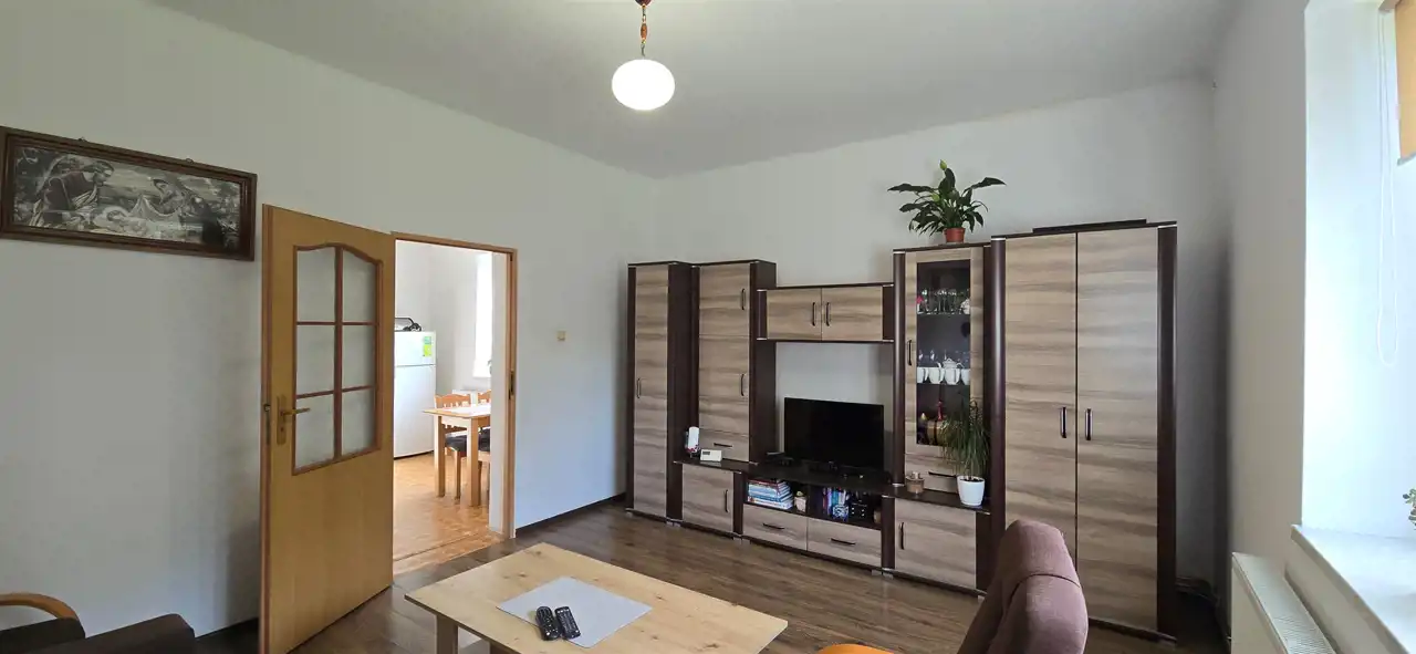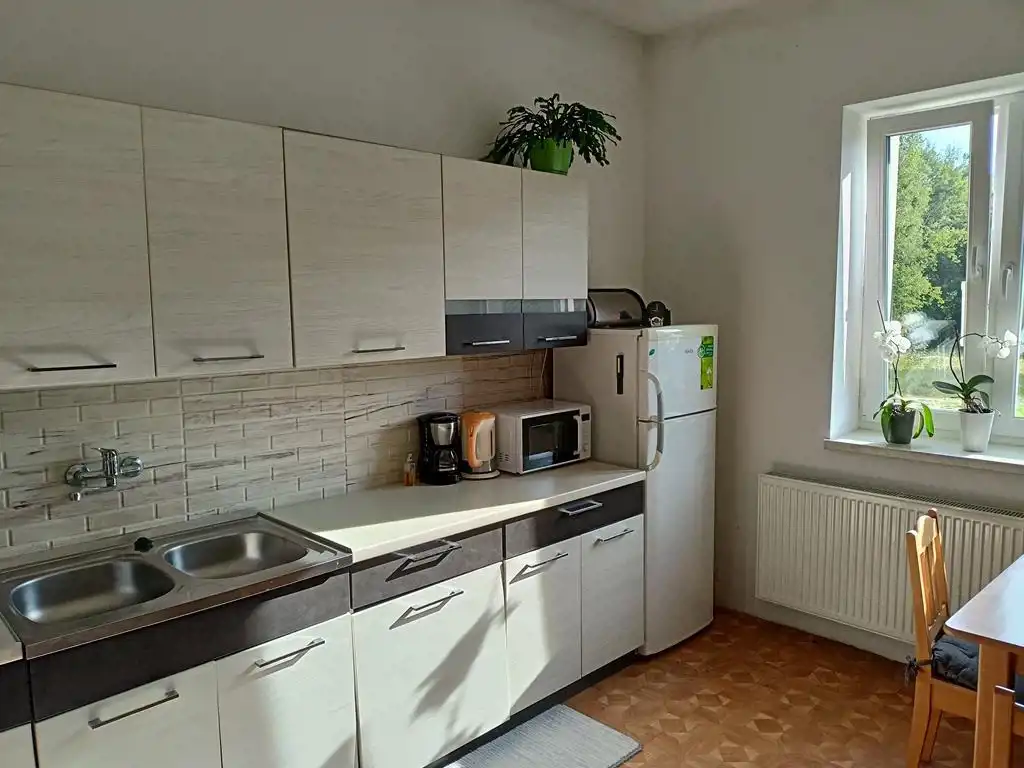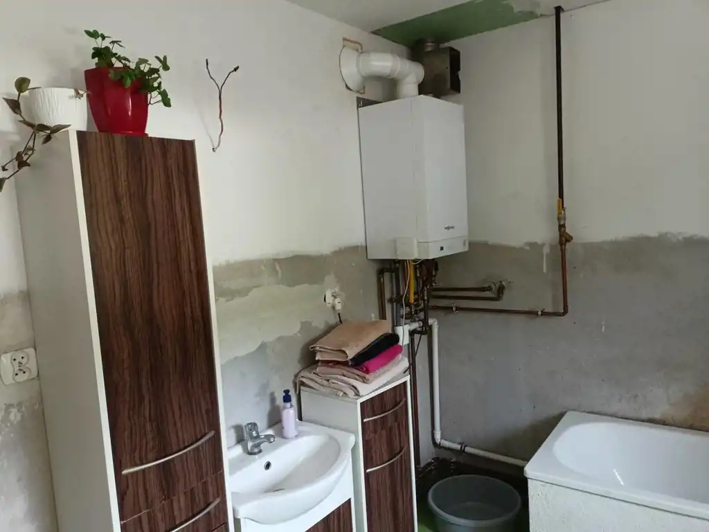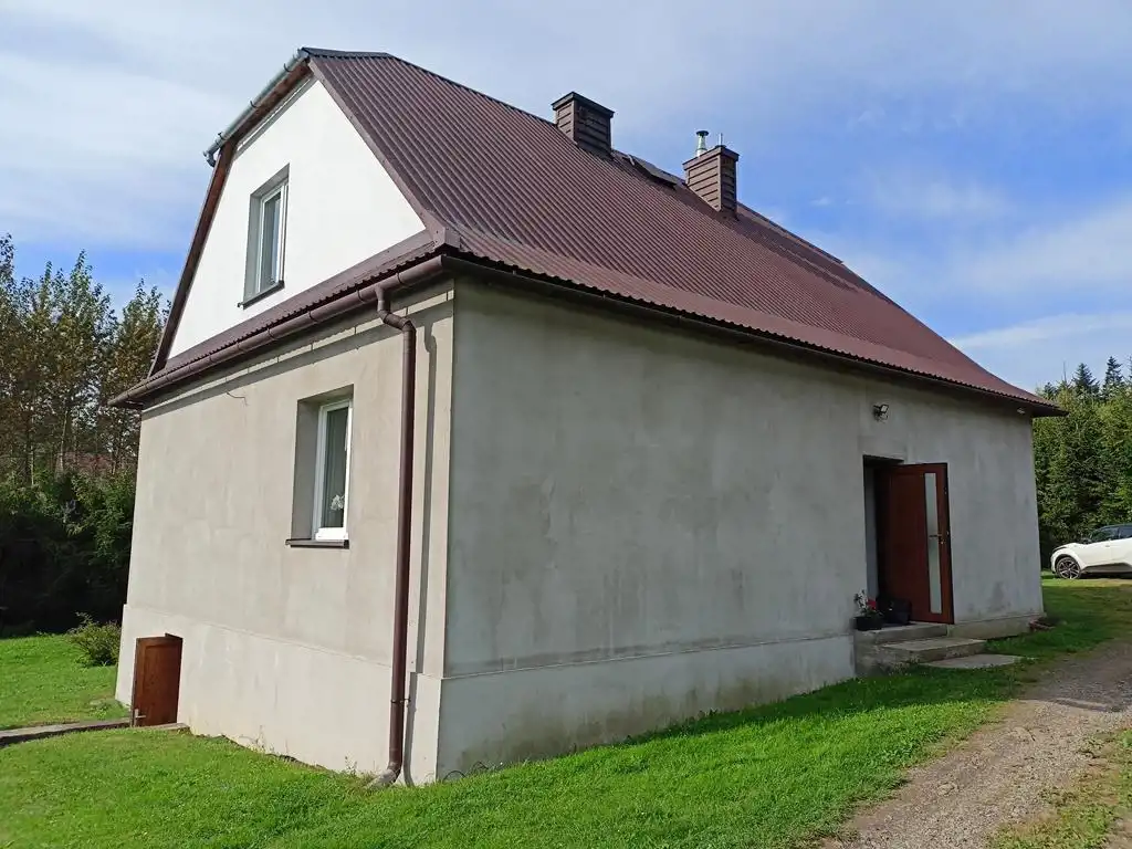 Budynek po częściowym remoncie - w ubiegłym roku wymieniono stolarkę okienną na okna PCV w systemie trzyszybowym, ocieplono budynek styropianem o grubości 20 cm na, który naciągnięto klej (kolor elewacji pozostawiono już do wyboru przyszłego właściciela). W budynku została również wykonana nowa instalacja centralnego ogrzewania z miedzi oraz zamontowano nowy dwufunkcyjny piec gazowy.
