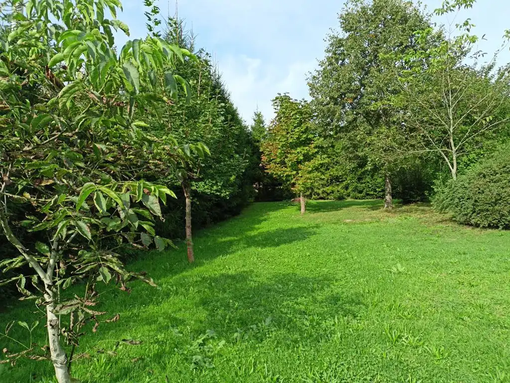 Budynek posadowiony na płaskiej, kształtnej działce o pow. 14,5 ara i wymiarach 40x36m. Wzdłuż 3 granic działkę porastają wysokie i gęste drzewa oraz krzewy, dając poczucie prywatności.