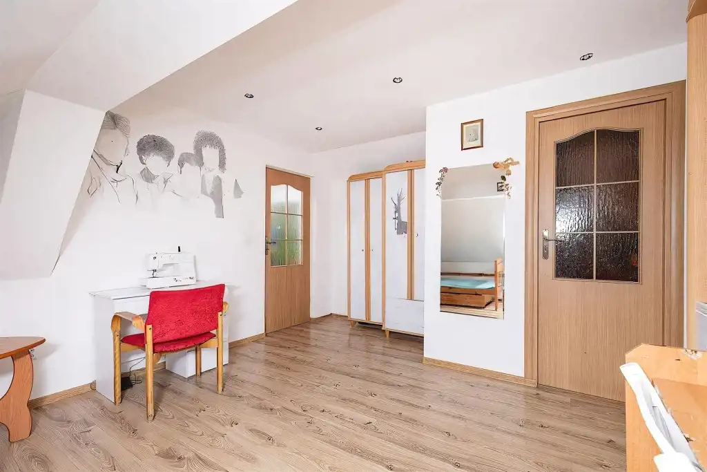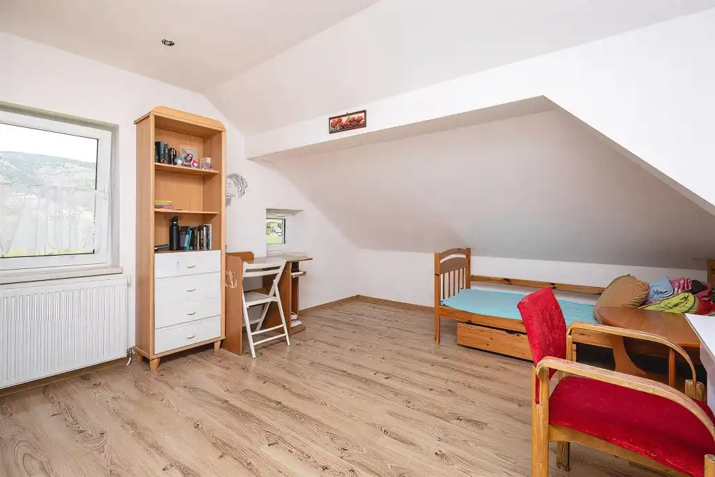 Poddasza: 3 pokoi z widokiem na okoliczne wzgórza.