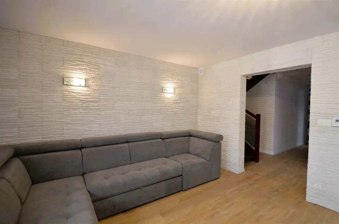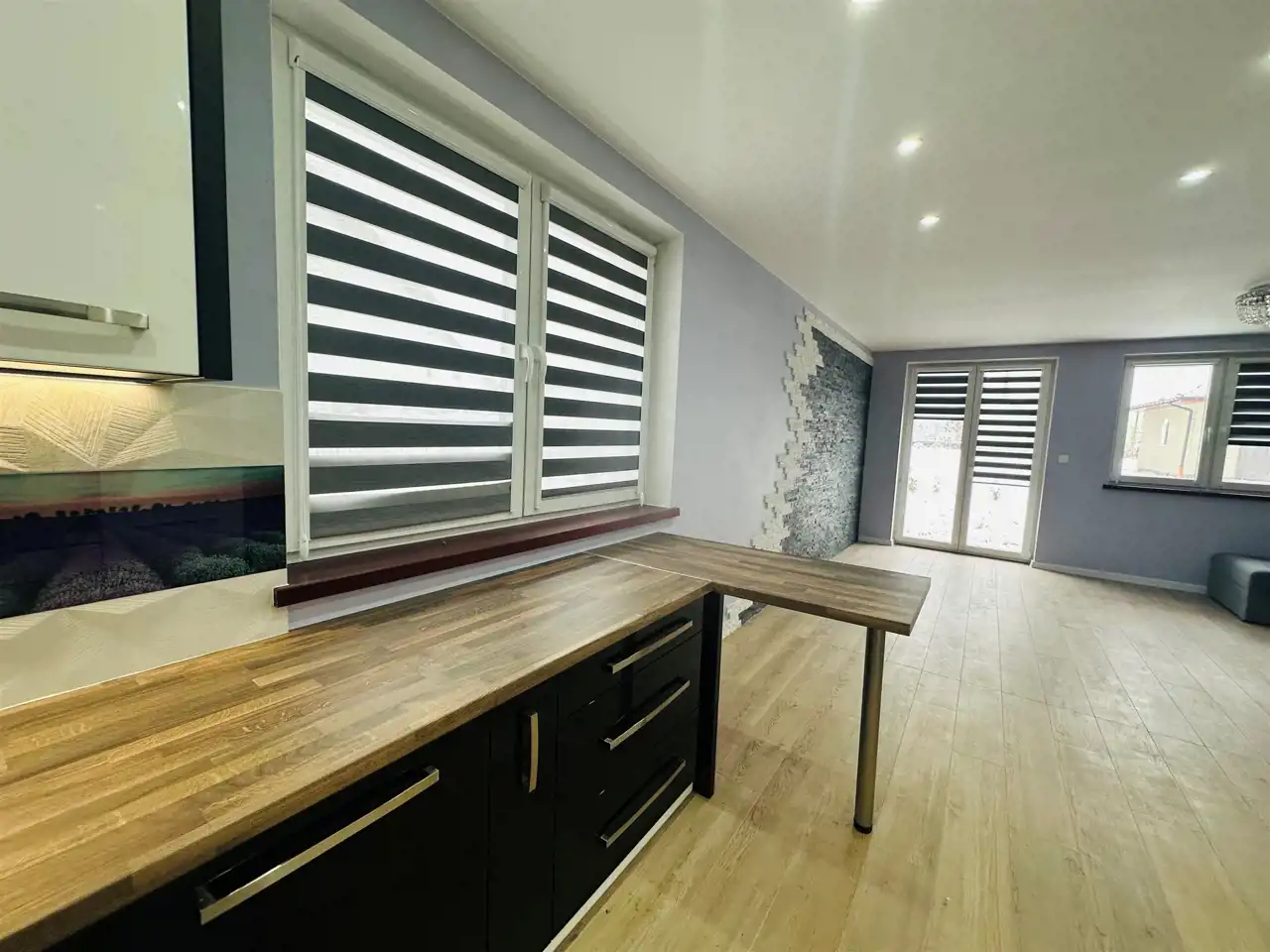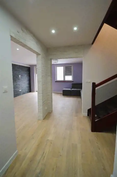Rozkład pomieszczeń:Na parterze przestronny wiatrołap z miejscem na garderobę, w pełni umeblowana i wyposażona kuchnia, duży i jasny salon z wyjściem do ogrodu oraz piękna łazienka z natryskiem i WC.