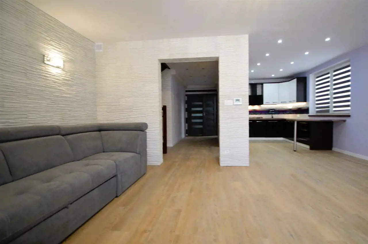 Na sprzedaż budynek parterowy z poddaszem użytkowym, niepodpiwniczony w zabudowie wolnostojącej. Dom posadowiony na 6-arowej działce. Działka kształtna, z bezpośrednim dostępem do drogi publicznej. Budynek wykonany w technologii tradycyjnej, murowanej. Ściany z pustaka oraz cegły. Strop nad parterem żelbetowy monolityczny, strop nad poddaszem drewniany, ocieplony wełną mineralną. Budynek ocieplony styropianem. Dach o konstrukcji drewnianej, kryty dachówką ceramiczną.
