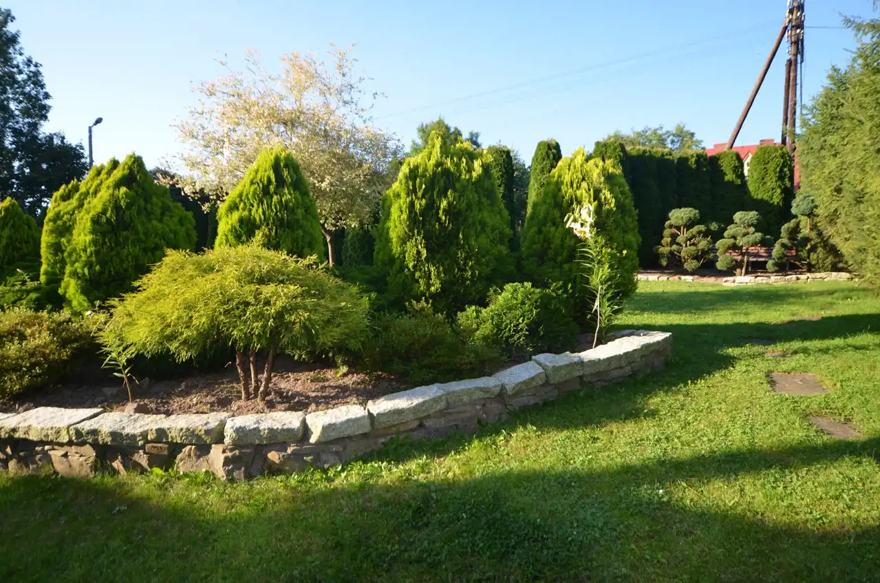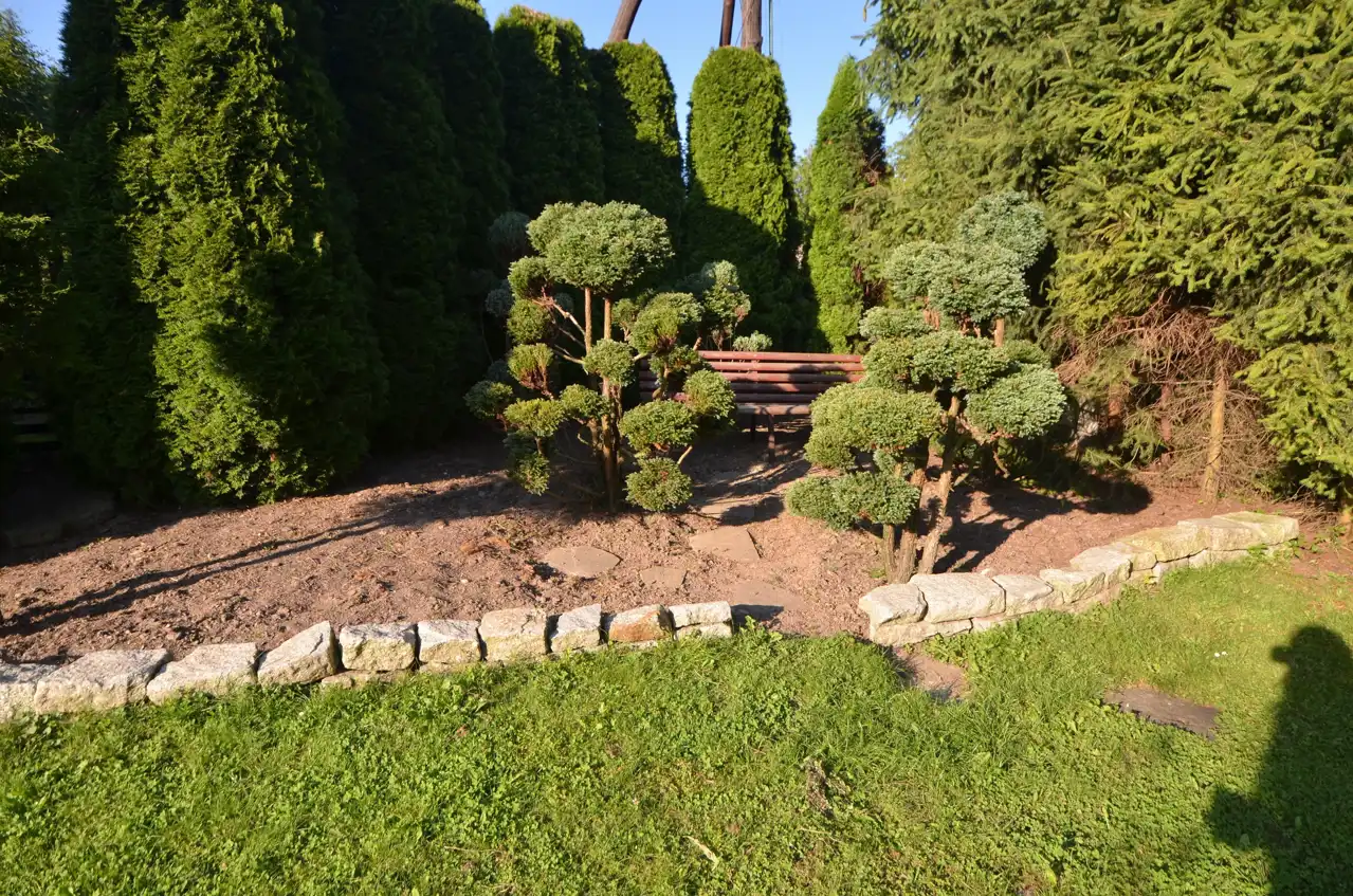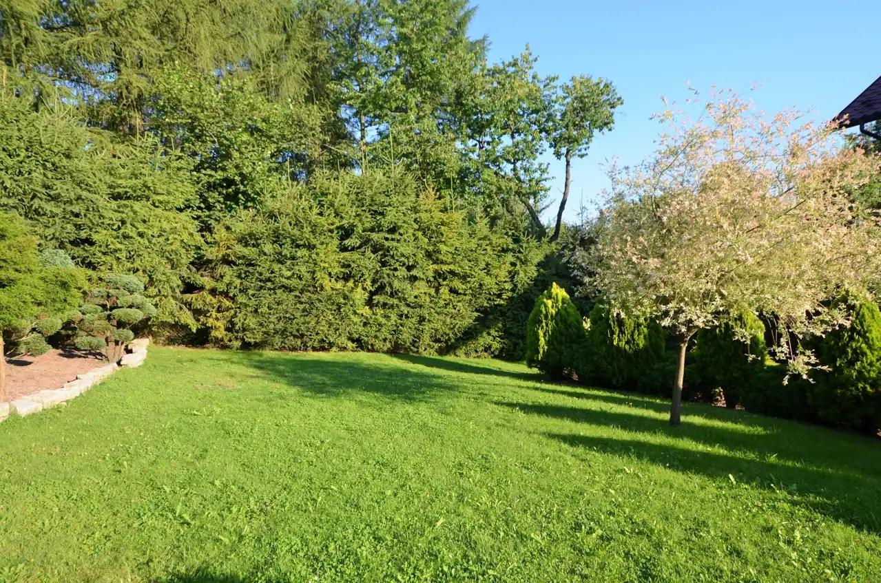 Działka zagospodarowana i ogrodzona z bramą wjazdową.