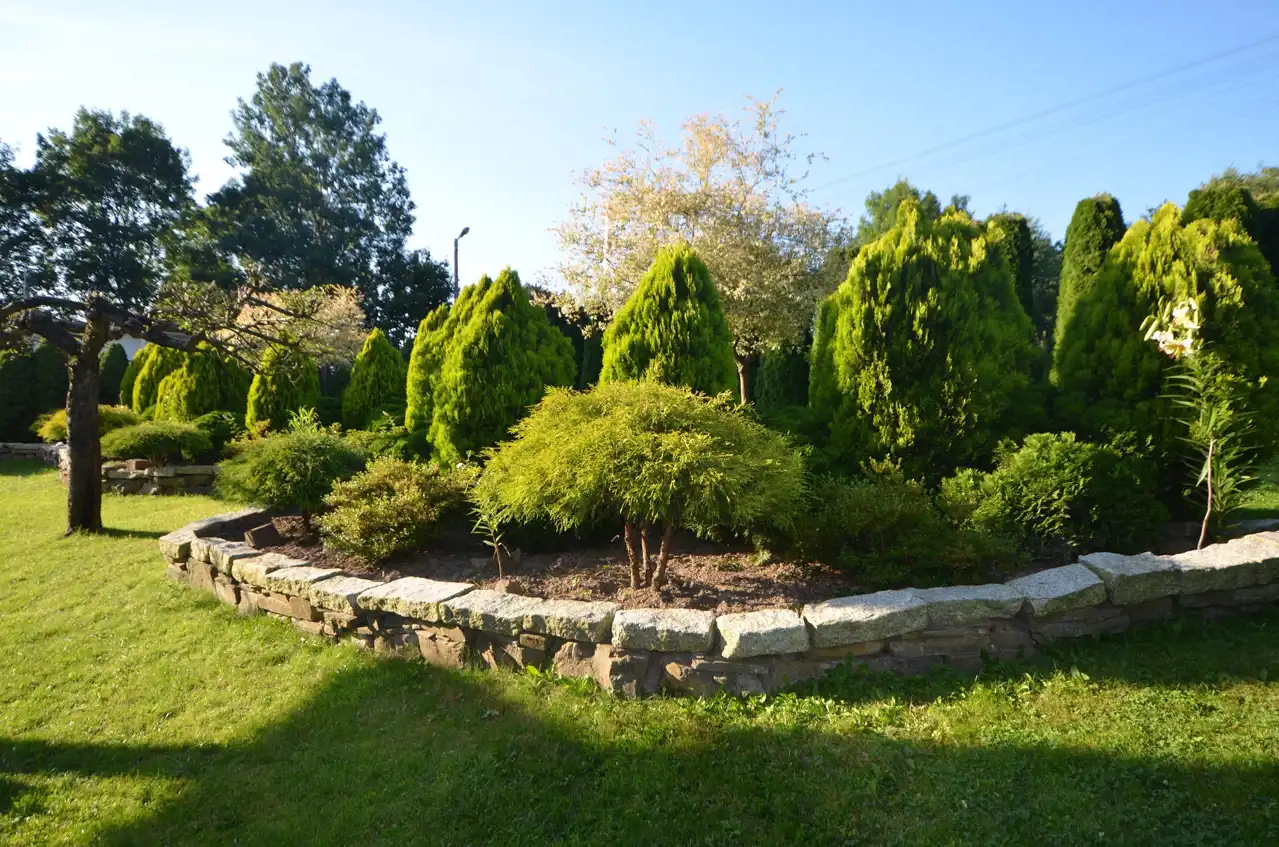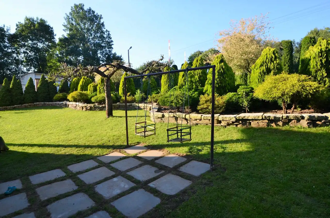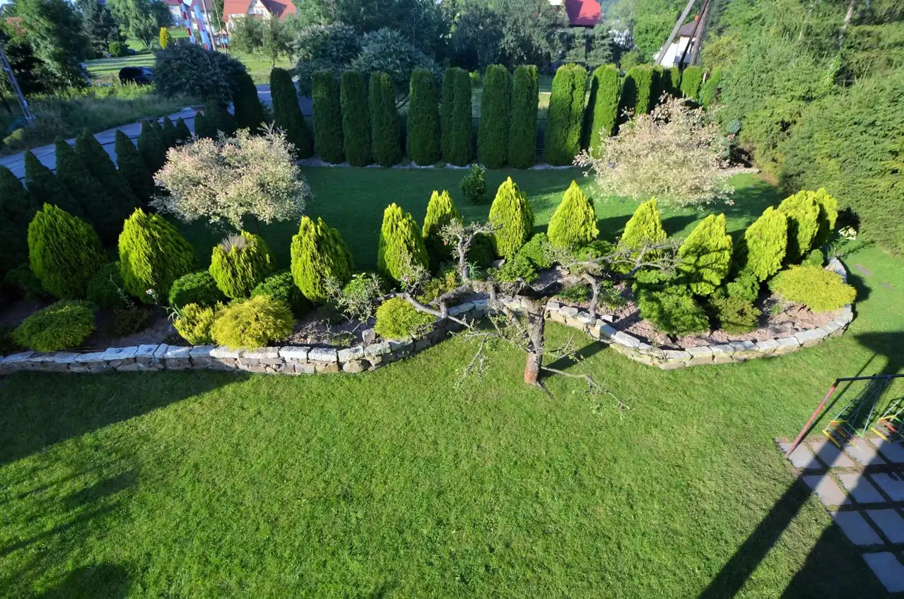 Działka zagospodarowana i ogrodzona z bramą wjazdową.