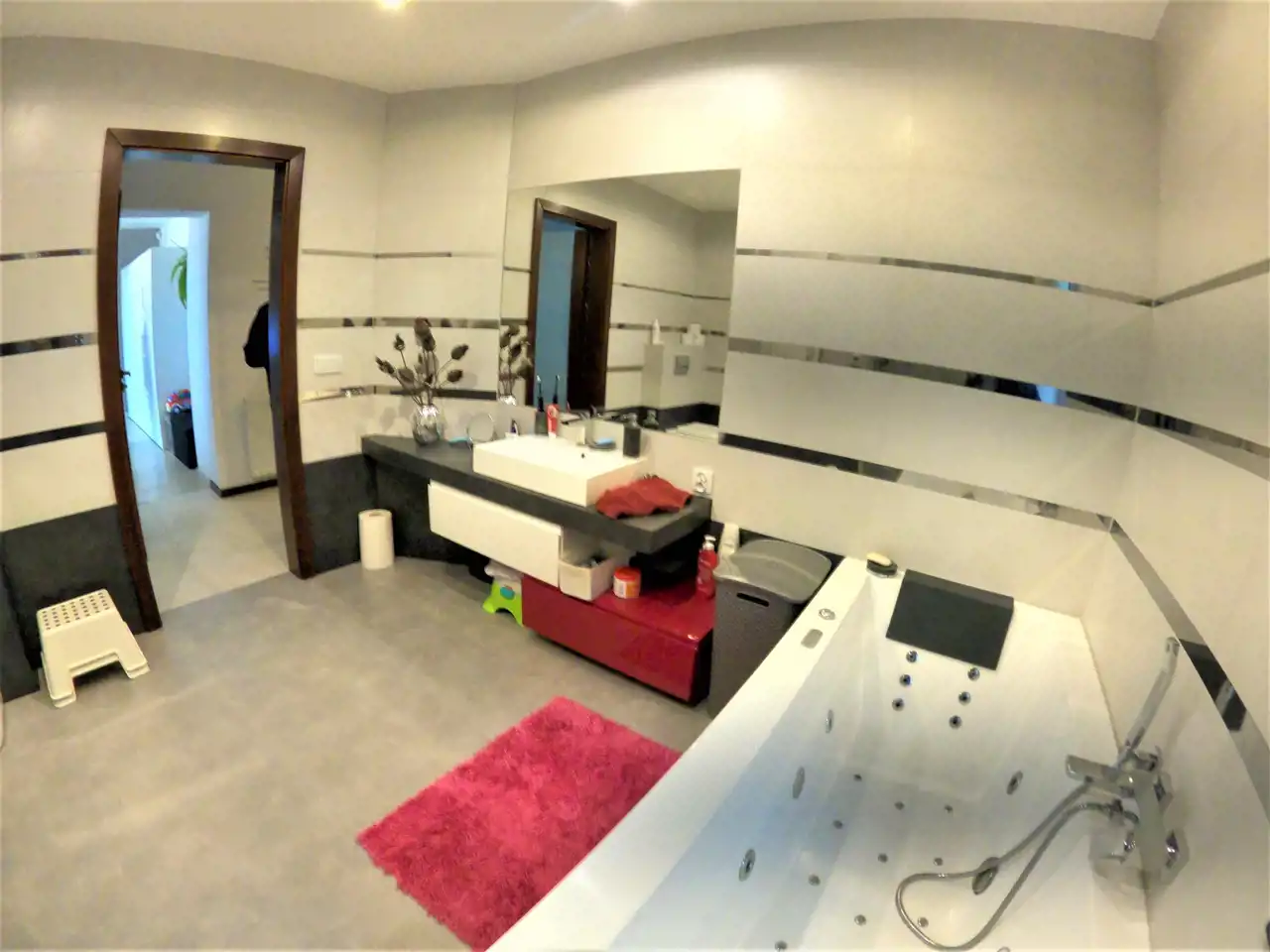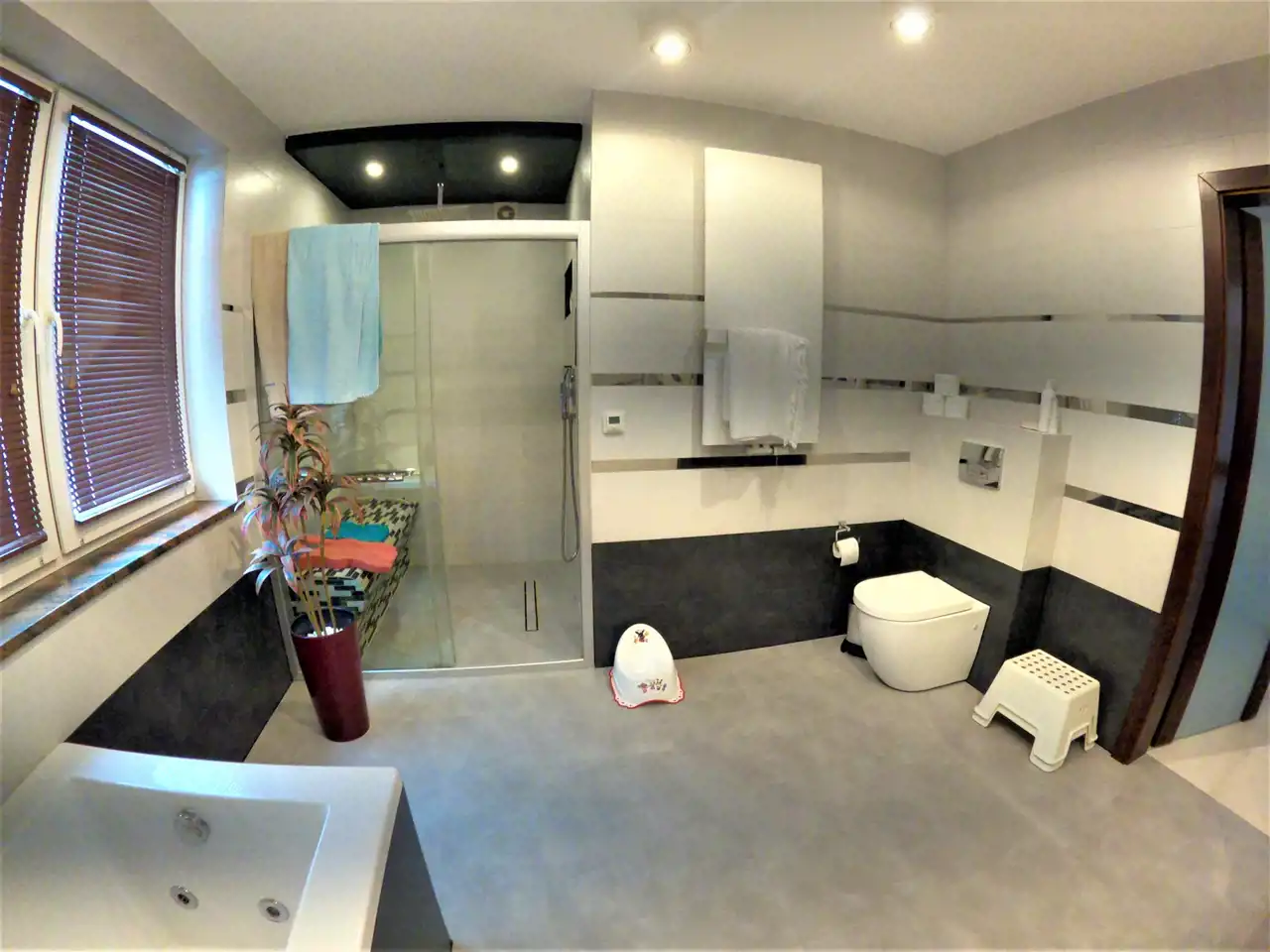 W całym domu system alarmowy. W nowej części w łazience ogrzewanie podłogowe, wanna i natrysk, oddzielne w c