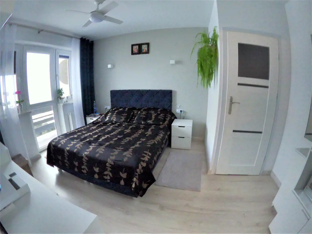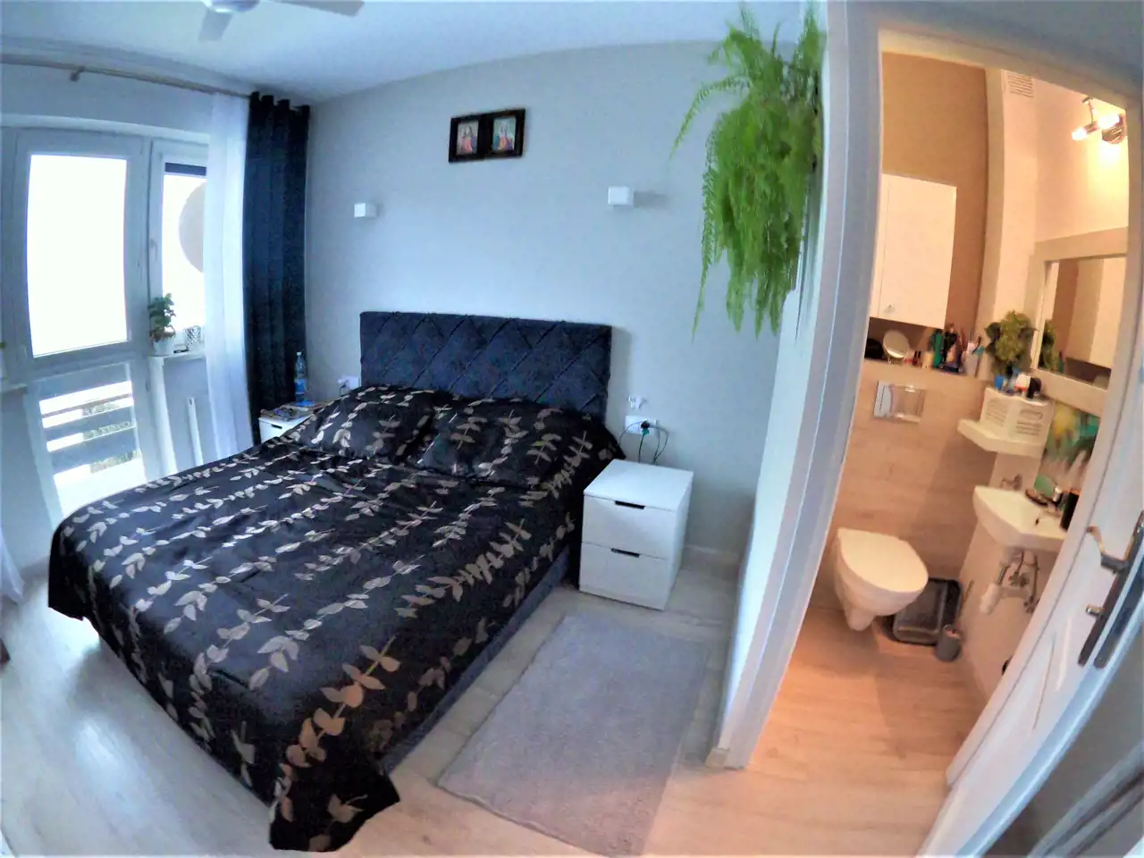 W sypialni na podłodze panele , zamontowana również klimatyzacja, kolejna sypialnia z łazienką.