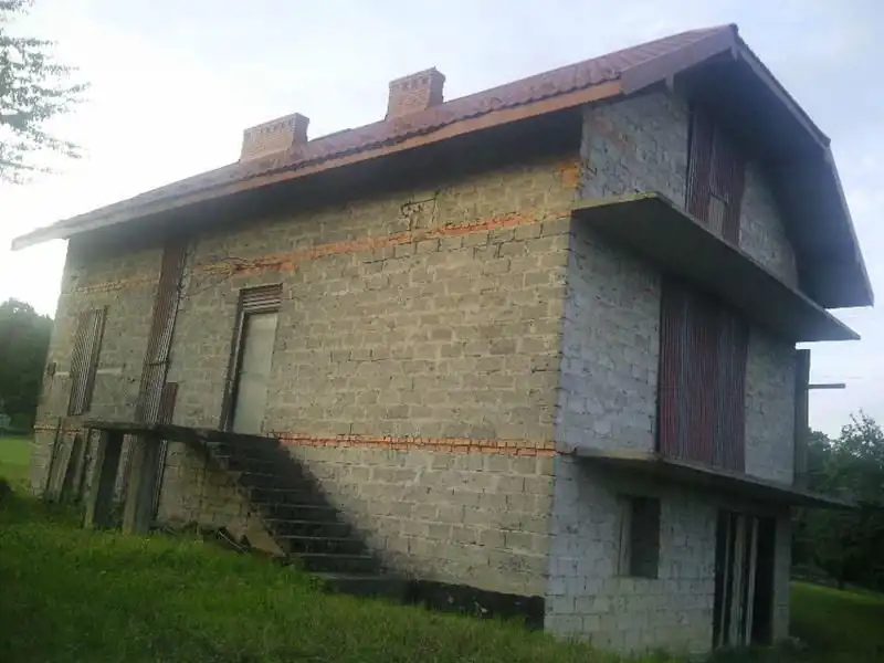 Oferujemy Państwu na sprzedaż dom w stanie surowym otwartym posadowiony na 16-arowej, płaskiej, widokowej, częściowo zagospodarowanej działce o nieregularnym kształcie. Dom wybudowany w 2010 roku z pustaka oraz cegły, podpiwniczony w całości, z nową, wymienioną więźbą dachową, na nowo został przykryty blachodachówką.