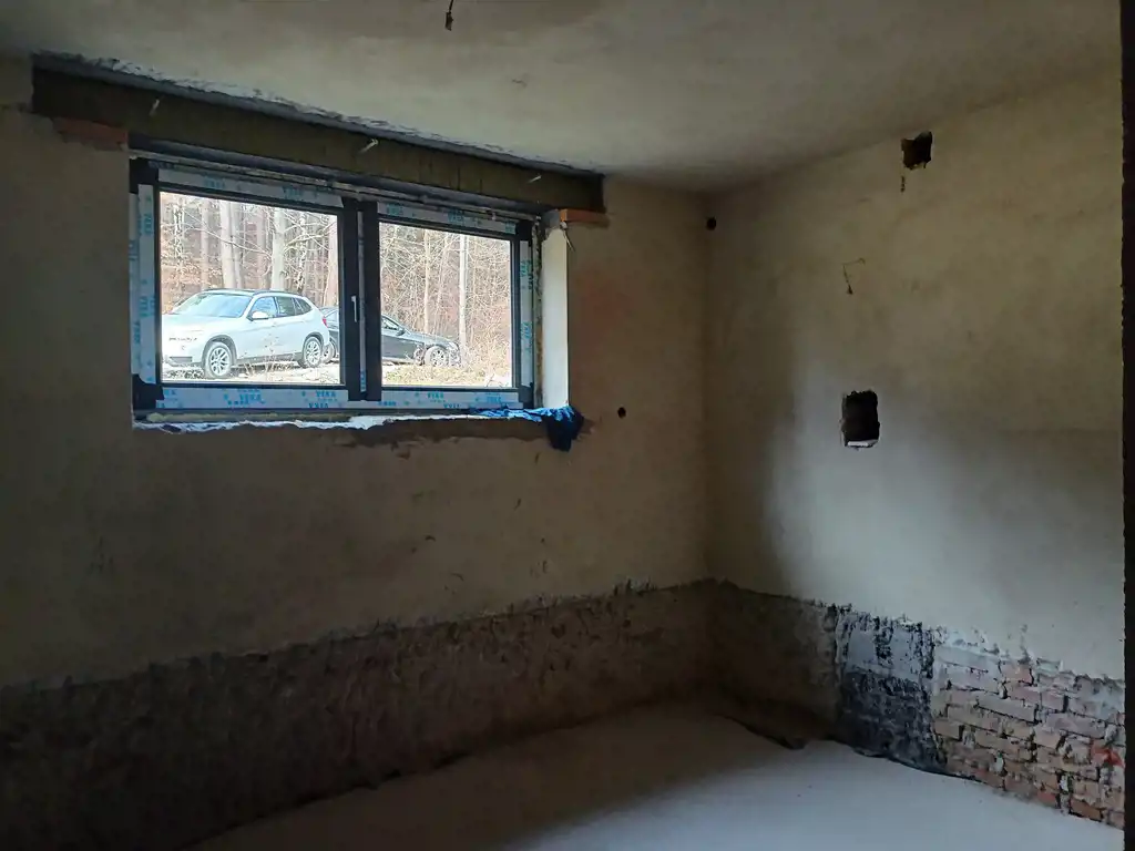 Budynek o powierzchni użytkowej 162 m2, całkowitej 220 m2., budowany w 1997 roku z pustaka i białej cegły, na fundamencie żelbetowym. W domu została wykonana instalacja wodna, kanalizacyjna, elektryczna i gazowa, a także tynki wewnątrz oraz częściowo elewacja zewnętrzna.