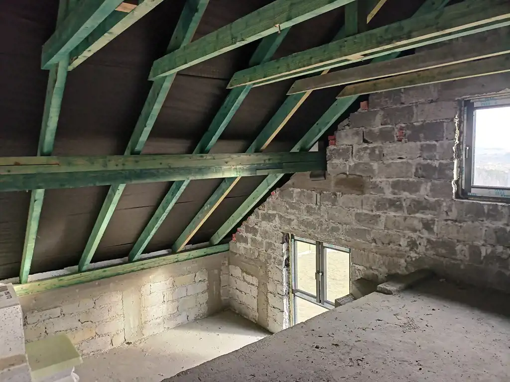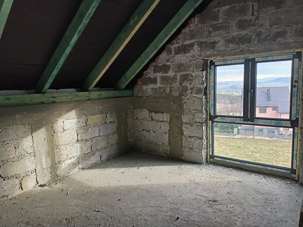 Poddasze do zaadaptowania na pokoje i łazienkę.