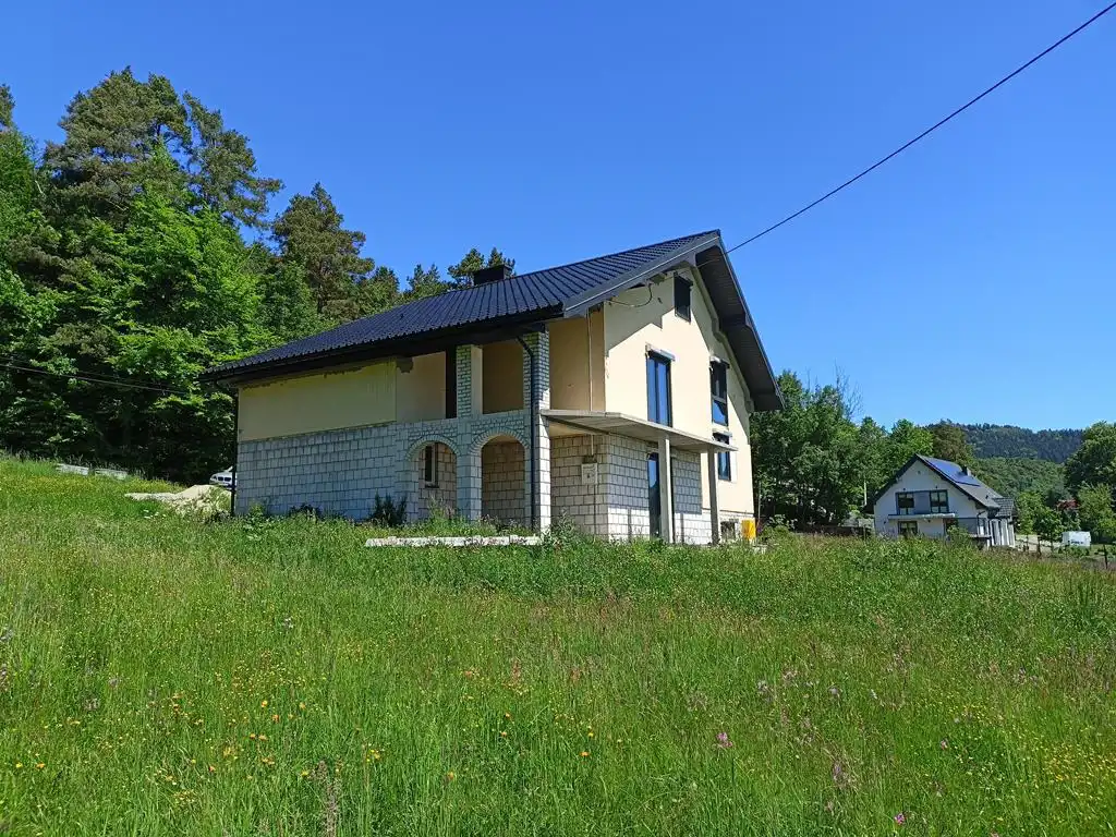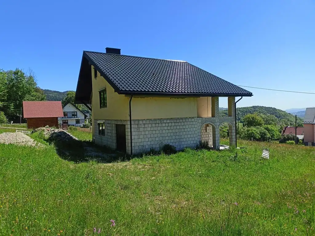 Oferujemy państwu na sprzedaż dom jednorodzinny w stanie surowym zamkniętym posadowiony na 16-arowej, widokowej działce u podnóża lasu. Nieruchomość położona jest w jednej z miejscowości Gminy Limanowa, pomiędzy Limanową a Nowym Sączem.
