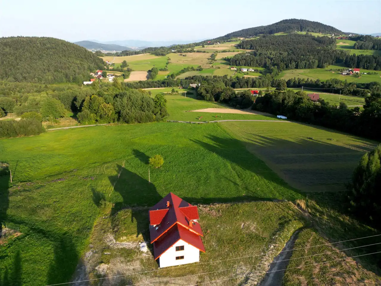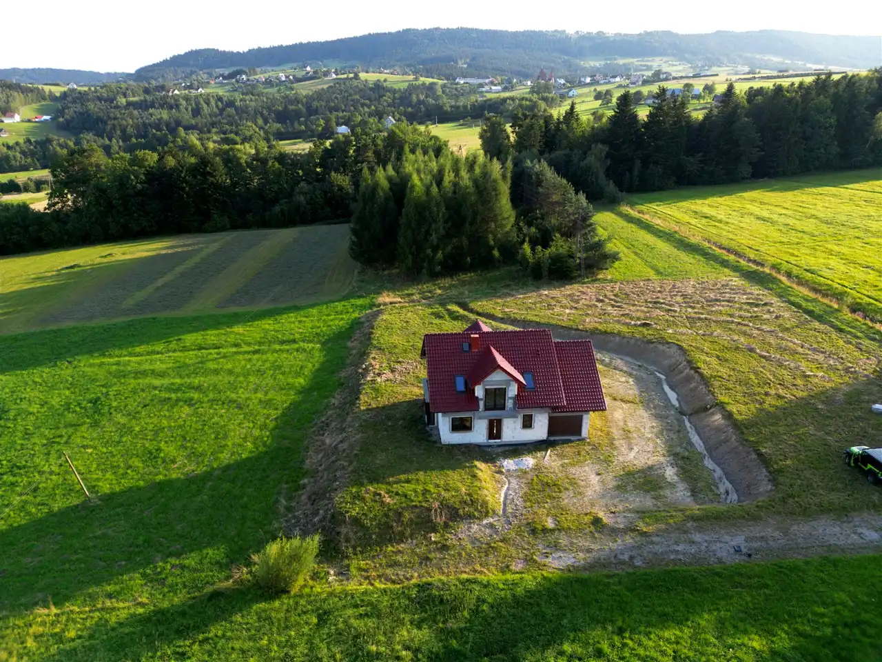 Nieruchomość została zaprojektowana w taki sposób, aby funkcjonalność codziennego życia przenikała się w naturalny sposób z komfortem wypoczynku. Działka jest na tyle duża, że mimo już częściowego zagospodarowania wciąż daje szerokie możliwości dalszego rozwoju. Z każdej strony w najbliższym otoczeniu mamy tereny zielone, leśne. Korzystna ekspozycja terenu 637 m n p m a jednocześnie delikatne nachylenie terenu gwarantuje nam atrakcyjny górski widok z każdej części działki.