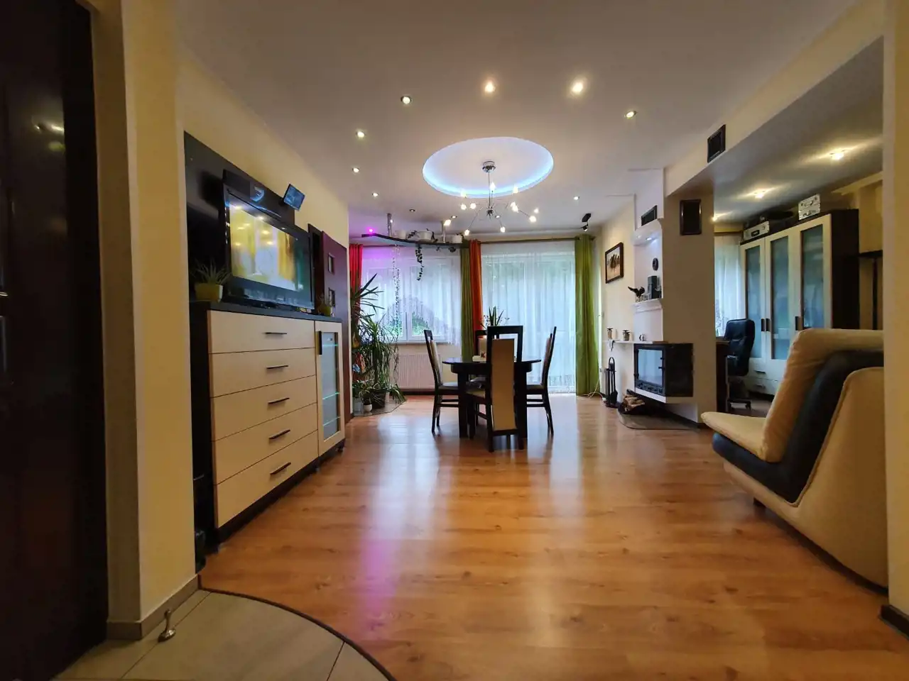 - Ogrzewanie: gazowy piec + awaryjny kocioł na groszek, ogrzewanie podłogowe na parterze