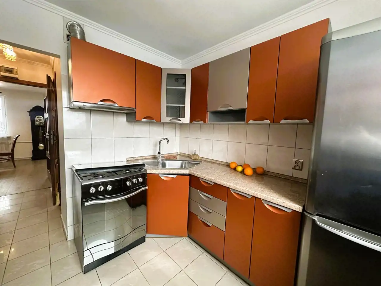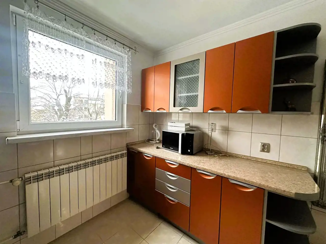 - Kuchnia: Oddzielna, jasna (z oknem wychodzącym na ulicę), umeblowana i wyposażona w niezbędny sprzęt AGD: lodówkę, kuchenkę gazową oraz okap